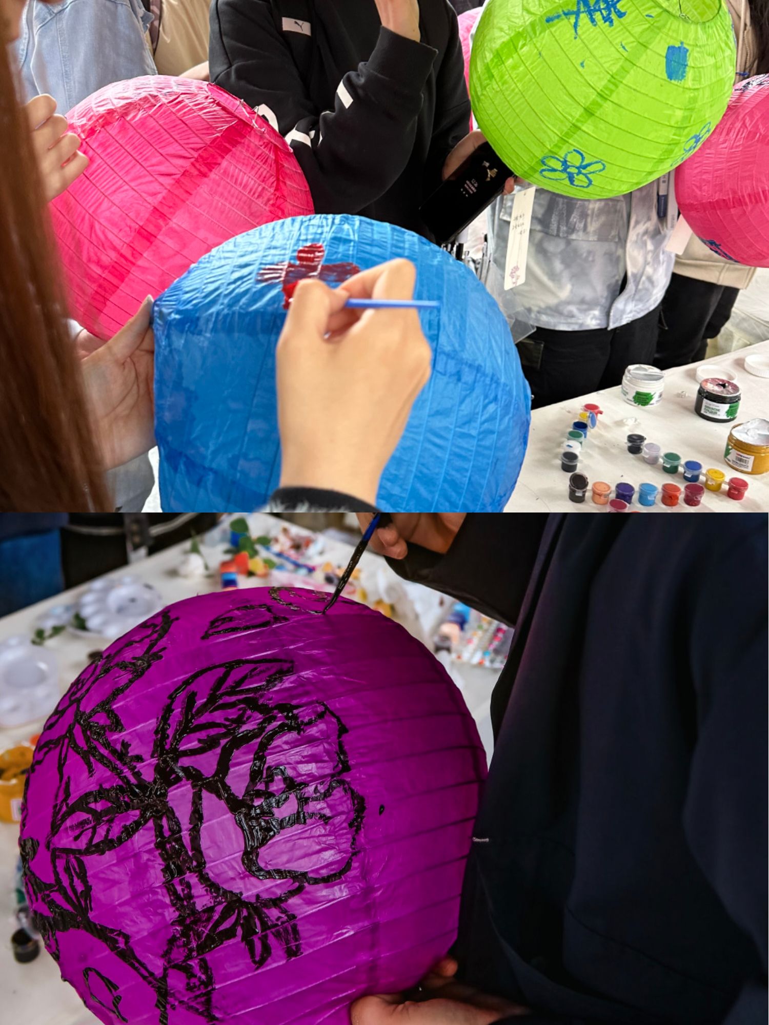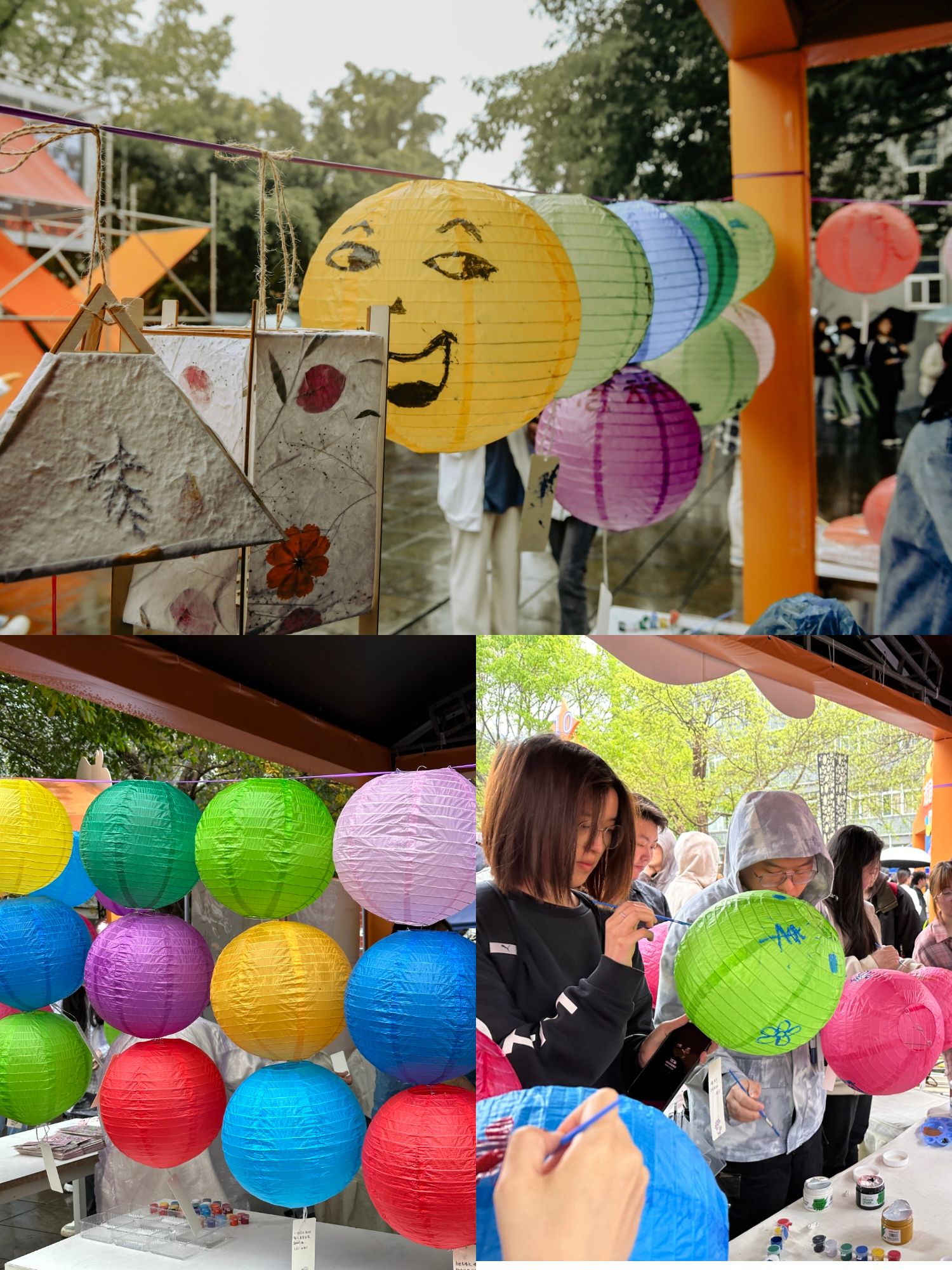 除了戏剧表演外,我院也举办了手绘灯笼的外围活动。由工作人员将纸灯笼、花草标本、胶水、颜料、画笔等制作材料发给各位参与者,在同学们的一双巧手下,灯笼都变得独一无二,颇有特色。此活动让更多人参与到了这次戏剧节中,感受非遗和戏剧的魅力,同时也促进了同学们之间的交流,烘托了文化氛围。