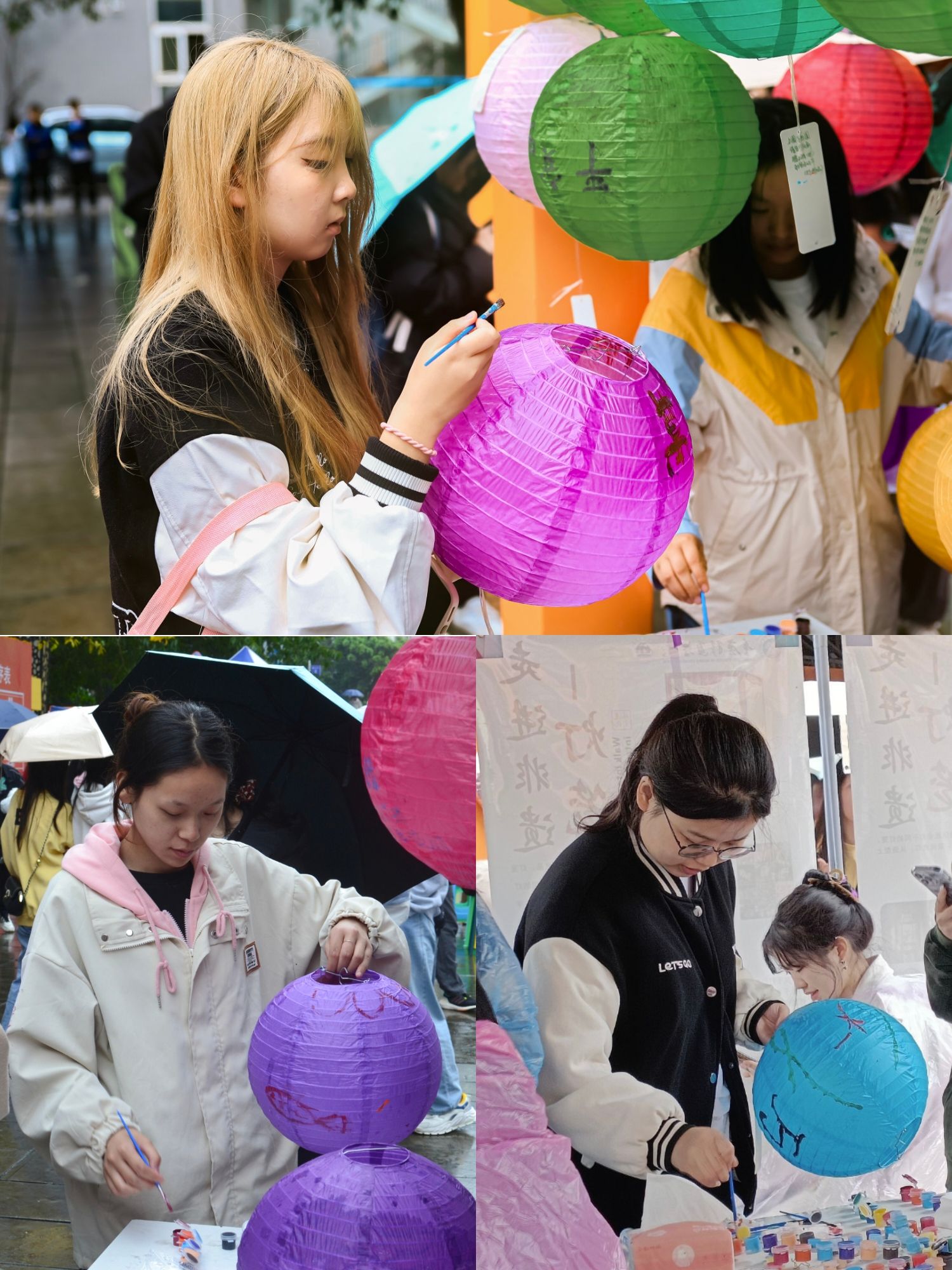 非物质文化遗产是一个民族传统文化的珍贵记忆,展示了源远流长的独特生产生活风俗,彰显着特色鲜明的民族文脉。学校是文化艺术教育的主阵地,是弘扬民族艺术的先头兵。2023年4月23日,为了更好地宣传第十届“名角杯”校园戏剧节,外国语学院与非物质文化遗产研究协会在黄桷树广场共同举办了主题为“非遗纸香,苞‘笼’万象”的手绘灯笼外围活动。这不仅是对文化传承的担当,更是对社会主义核心价值观的践行。