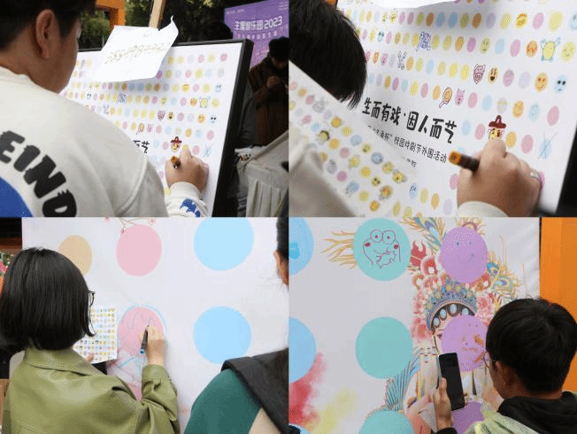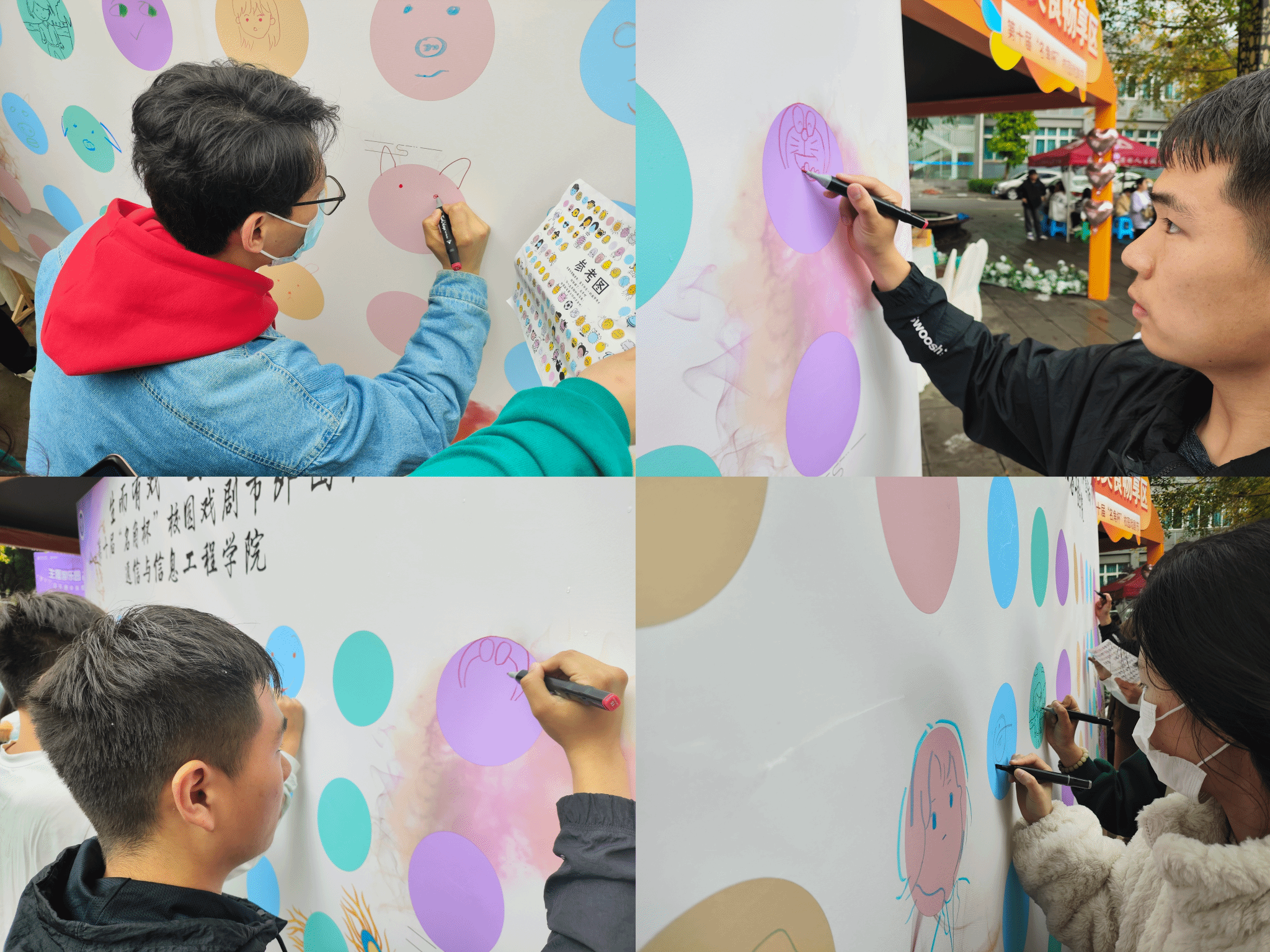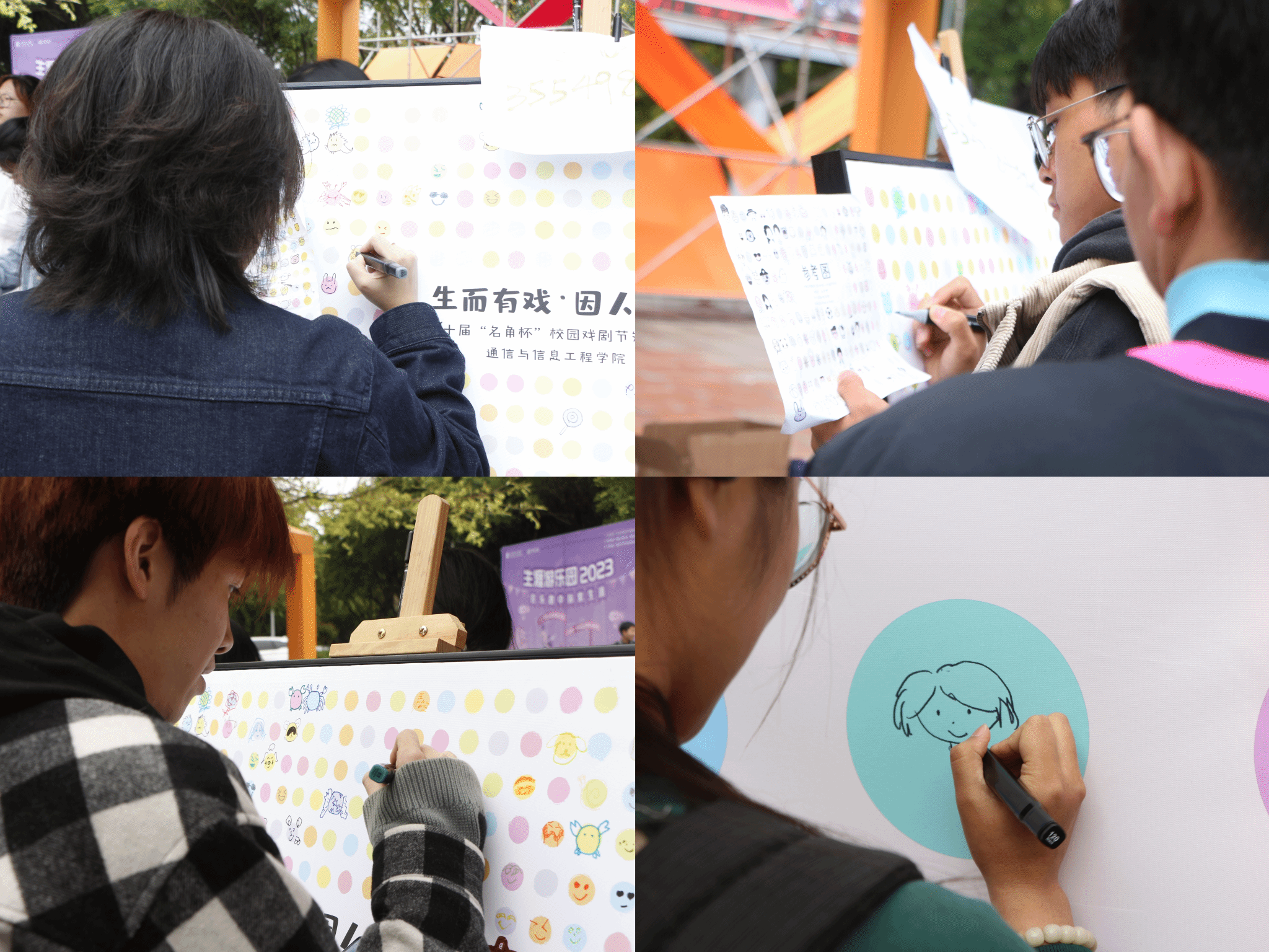 为传播戏剧文化,培养同学们的艺术情操,增强大学生对戏剧美学的认知,丰富同学们的校园生活,鼓励广大学子发挥艺术才华和创造力,并在活动中收获快乐和成长。2023年4月23日,通信与信息工程学院在黄桷树广场戏剧文创区举办了“生而有戏·因人而艺”第十届“名角杯”校园戏剧节外围活动,得到了师生的广泛关注。在短短一小时的时间里就吸引了两百余名师生参与。大家在展板上进行戏剧脸谱创作,以此来表达对戏剧美学的理解。