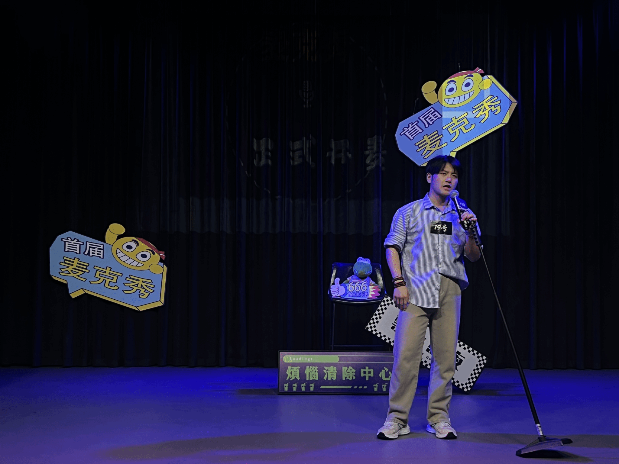 本次大赛还特别邀请了大学生艺术团语言表演分团成员韩兴淼向大家展示了一段专业的脱口秀表演,在气氛的带动下一段freestyle让他忍不住跟各位选手“切磋切磋”,游刃有余地表达以及滚瓜烂熟的台词让他在热爱的舞台上熠熠生辉,绽放出独属于他的舞台风采。