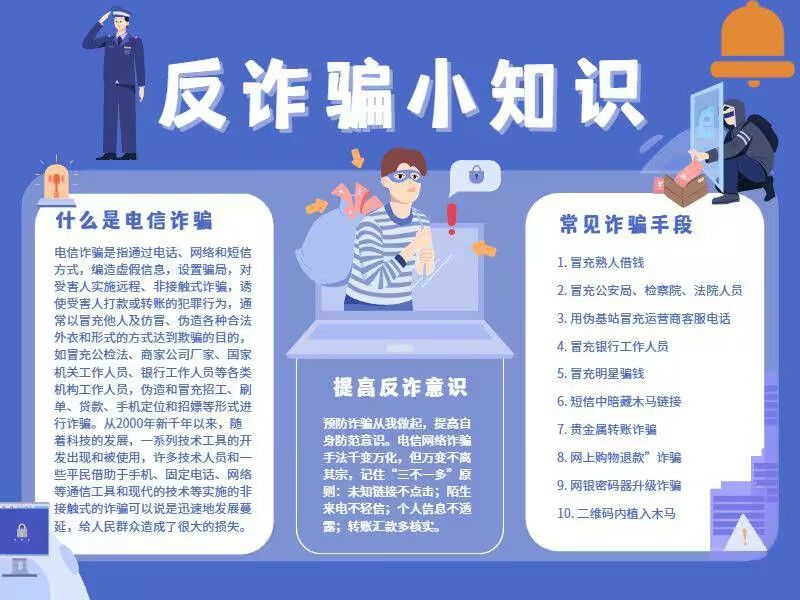网络诈骗已经成为了当今社会中的一个大问题,无论是个人还是企业都面临着极高的风险。为了保护自己的财产和信息,宣传预防范网络诈骗知识,大数据与计算机科学学院宣传调研部开展了“第二届金牌反诈员”活动,本次活动面向大数据与计算机科学学院的全体学生,4月5日到4月7日在优学派进行初赛的报名,于4月15日之前提交到对应的邮箱。每一位金牌反诈员都有着不一样的预防提醒,下面是一些防范网络诈骗的知识: