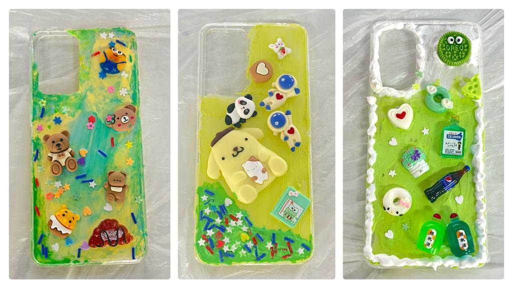 创作源于生活,反映了每个人的独特性格。一张张普通手机壳的手机壳,将在同学们的创作中实现蜕变。赤橙黄绿青蓝紫,任意几种颜色的搭配可以碰撞出不同的火花,粉蓝色组合治愈而又温柔,点缀上纯白珍珠则是锦上添花,创作者的“少女心”扑面而来,黄绿色的融合让人眼前一亮,彷佛置身于春天之际,传统的黑白配色往往伴随着“冷酷”、“简单”等代名词,在这基础底色之上添加与之风格相反的可爱配饰能带给人们强烈的反差感,同学们在不同颜色的运用,装饰物的搭配思路上有着独属于自己的见解和想法,在一定程度上体现同学们拥有灵活的创作思维。