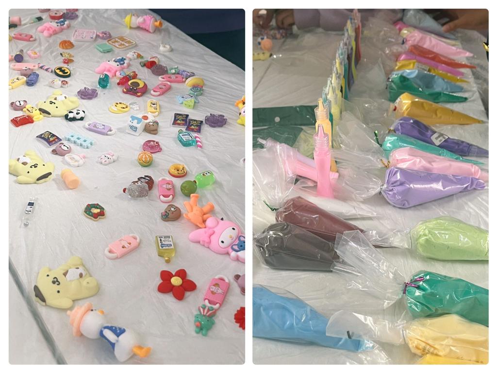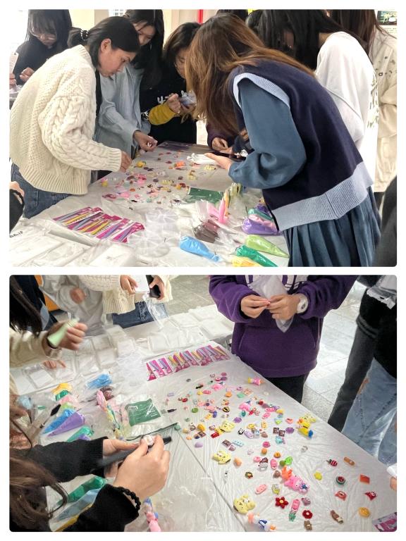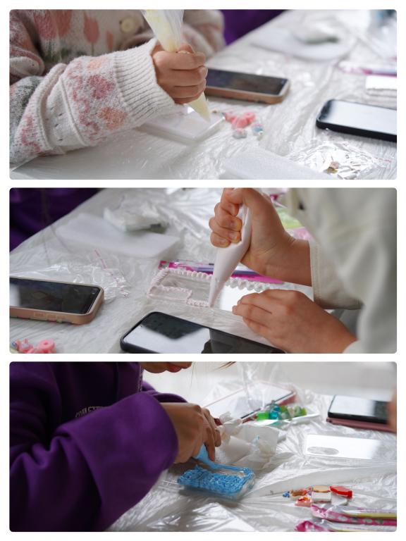 DIY式艺术是流行于现代的个性创作方式,依靠灵活自如的动手能力来满足自己天马行空的想象力。为带给此次参加活动的同学们更好的DIY体验,工作人员早早到达场地,在桌子上放置好奶油胶、滴胶、手机壳、装饰物、小工具等活动材料,等待同学们的挑选。