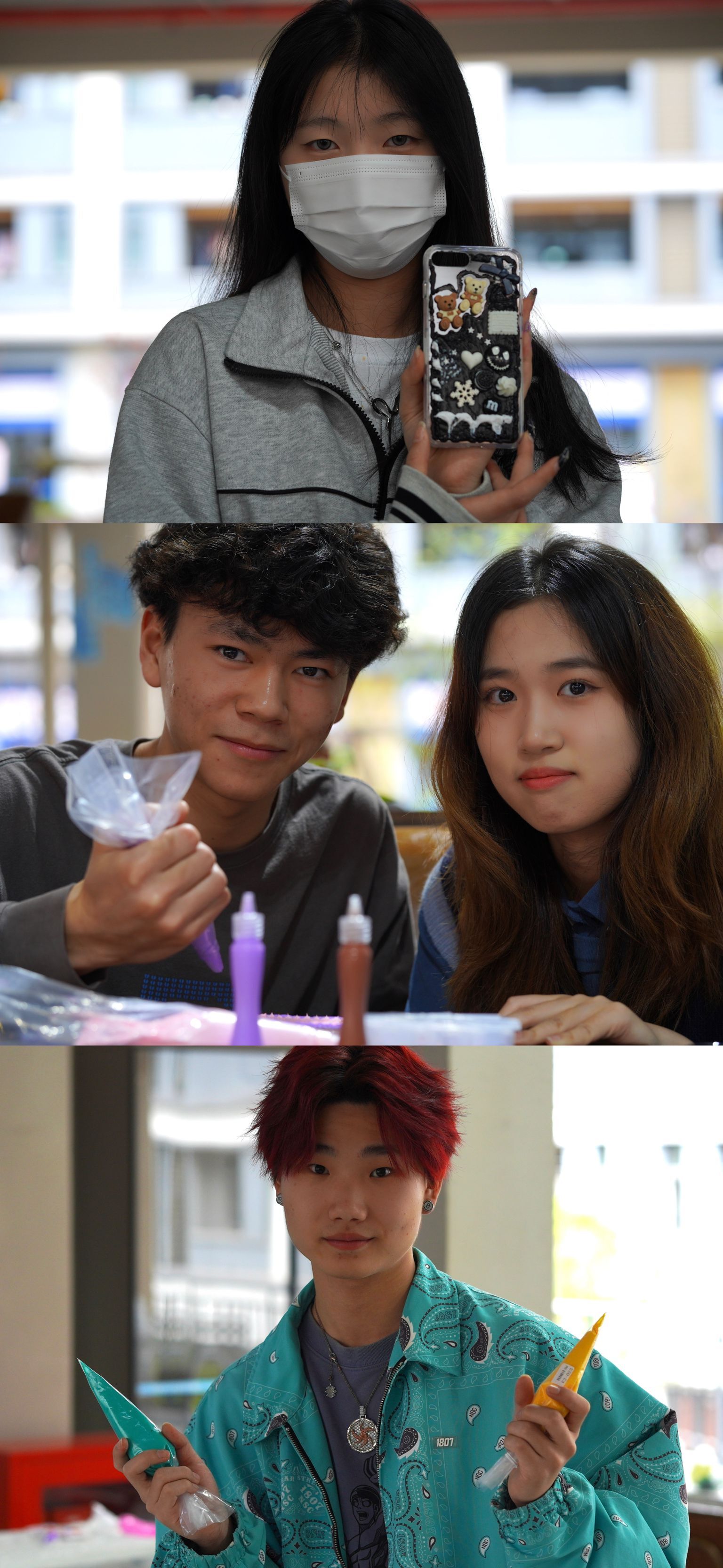 活动现场呈现出两种截然不同的“风景”,一侧是四处游走寻找灵感,借用工具的同学,互相交流创作思路或是提供搭配意见,另一侧则是沉浸在自己创作小世界中的同学,活动过程中始终专心致志,对于整体创作有着明确的方向。