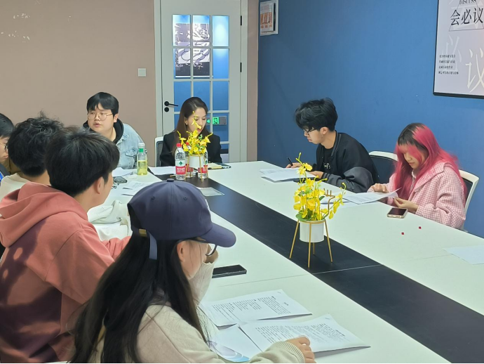为进一步提高校园艺术创作水平,发掘更多艺术型人才,同时营造良好的校园艺术氛围,上学期期末发起了关于2023年第十届名角杯"校园戏剧节"戏剧实验团"单元活动征集通知。大数据与计算机科学学院甲骨文艺术团积极响应学校号召,于在3月8日綦河书院3号楼千山·会议室对所收集到的短剧、心理剧剧本进行围读活动。