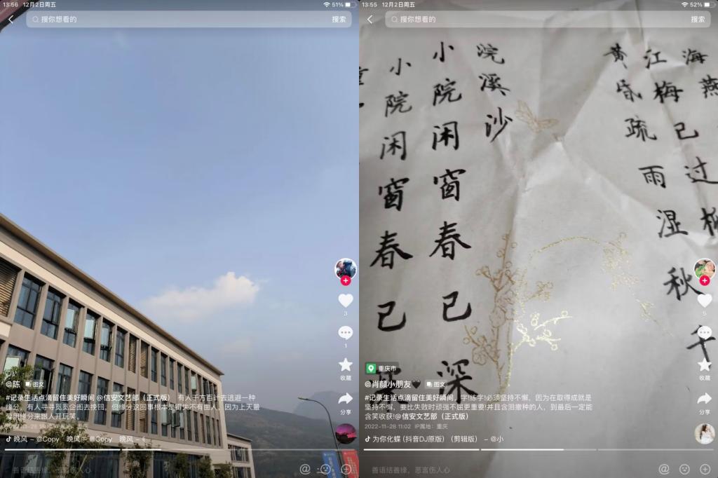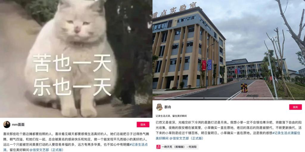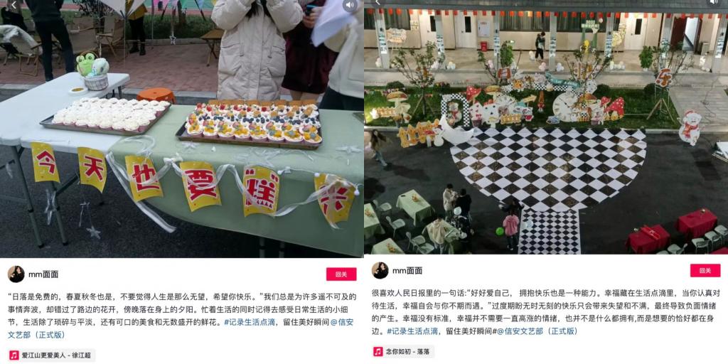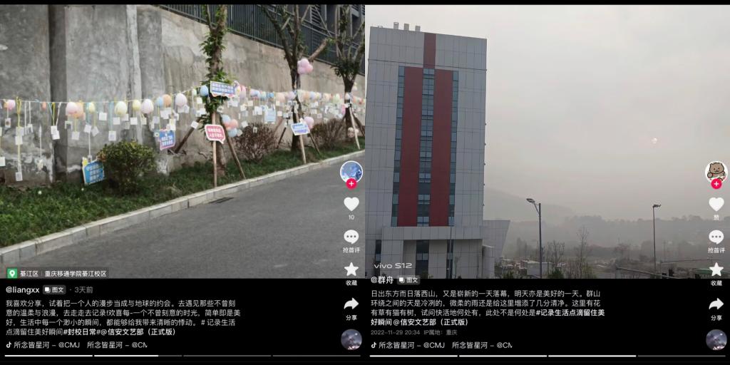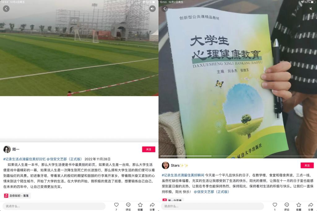 参与者在抖音上传每日打卡日记,这一环节中参与者们纷纷展现出各自丰富充实的日常生活,将自己日常中的小温暖小幸福大方展示,用文字吐露真情,用记录分享此刻。照片、文字、Volg视频的多元方式更是充满了生活气息,让我们深刻体会别样的一天。这让我们看到了在疫情封控下的移通校园也处处充满了美好,让同学们用文字记录生活,让同学们有迹可循。运用文字的力量,抒发情感,营造出积极向上的校园氛围。
