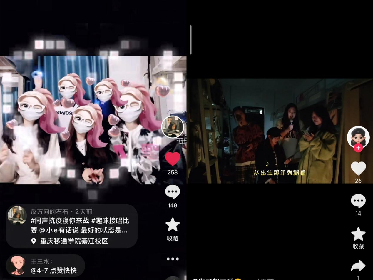 弘扬时代主旋律,倡导高雅,健康的文化艺术生活,营造良好和谐的校园氛围。此次活动同学们以寝室为团队进行接唱,轮流演唱同一首歌曲,虽然被困在寝室,但因有室友的陪伴,让寝室一片小天地增添了一丝色彩。“夜空中最亮的星”,让同学们在生活中看到黑夜中的希望;“追光者”,让更多人走上追光的道路。优美的歌声荡漾着青春的旋律,无限的感激储存在同学们心中。在网络上秀出属于自己宿舍的风采,在生活里唱出属于移通的欢歌。同学们用歌声感谢辛苦的医护人员,同学们用音符消解老师们的疲惫。