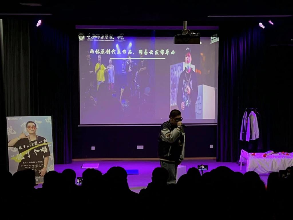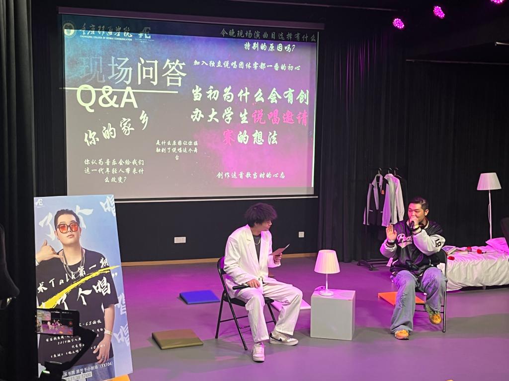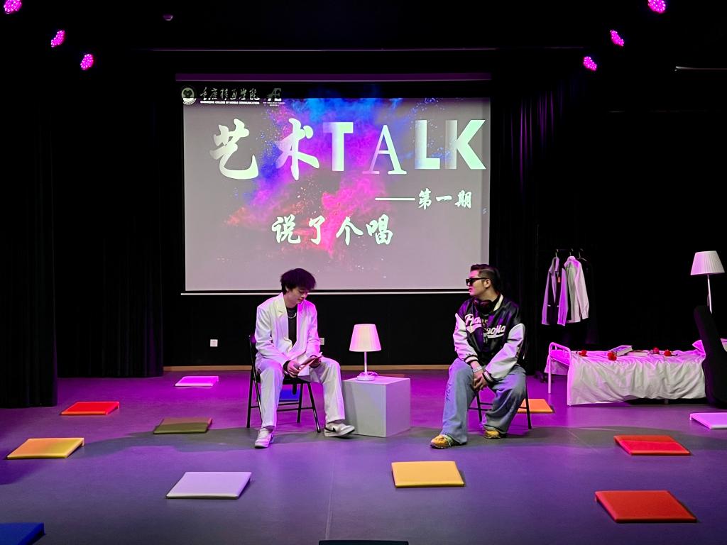《艺术Talk》是由艺术教育中心綦江校区主办的一档艺术访谈类活动,定期邀请音乐、舞蹈、戏剧等等热爱艺术的师生,为各位分享ta在移通的艺术成长故事,解析自己对艺术人生的理解与感悟。为了繁荣校园文化艺术生活,11月20日艺术教育中心邀请到2017级大数据与软件学院,物联网工程专业毕业生,雾都一番成员CZ雨林——陈治霖学长和学弟学妹于瀛溪书院黑匣子小剧场进行说唱艺术的交流分享。让我们走近艺术Talk第一期“说了个唱”!