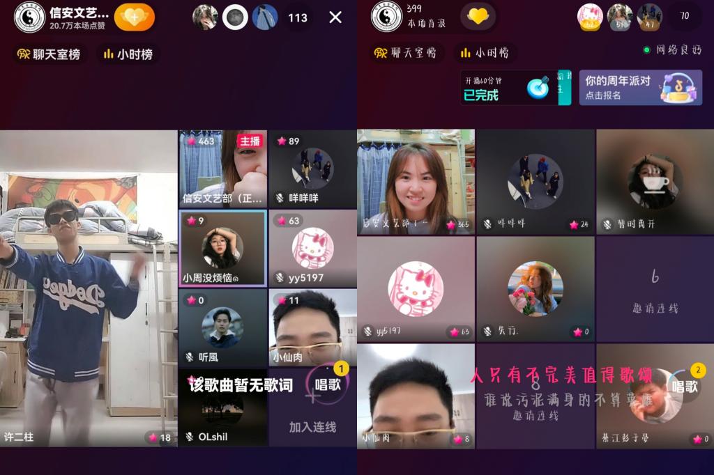 直播间内,同学们热情高涨,踊跃参与,积极连麦一展自己的风采。虽然同学们人在寝室,但只要有一颗表演的心,哪里都是舞台。当然,这里不仅是学生们的舞台,同时也是老师们的舞台。在同学们的盛情邀请下,温朝一老师在为同学们送完晚餐后也来到直播间激情献唱,。