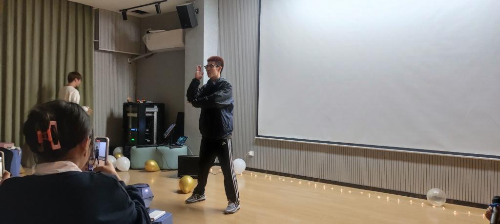 通过击鼓传花小游戏,锁定自我介绍与展示的“幸运之子”,目的是让同学们记住自己的名字与特点。此环节中,同学们纷纷展现自己的风采,表现出自己独特的一面。唱,秀出个性风格。各类语言,多种风格,同学们大展歌喉,与台下同学积极互动。“舞”,秀出个性实力。除了轻盈柔美的古典舞,帅气的即兴街舞,同学还展示了一段如排山倒海之势的武术,场下掌声此起彼伏。说,秀出个性特色。同学们准备了精彩的脱口秀,科普了自己家乡的特色文化,如重庆的特色方言;也有同学就男女平等问题发表了自己的看法,即兴演讲,与场下同学互动,产生思想的碰撞。演,秀出个性作品。同学们分享自己的兴趣爱好,如表演陶笛、分享摄影作品、分享一本好书等等。