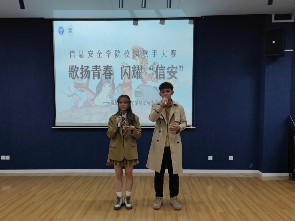 为提高同学们的艺术鉴赏能力,营造积极向上的校园文化氛围,推进我校完满教育理念的实施。10月14日下午14:00,信息安全学院“歌扬青春,闪耀‘信安’”校园歌手大赛于綦河书院二号楼苍山·阶梯活动室顺利举办。歌声从这里传出,音符在这里飘扬,青春从这里激荡,梦想从这里起航。音乐的魅力使信安学子们怀揣着相同的热爱,来到“歌扬青春,闪耀‘信安’”的舞台,一同放飞梦想的千纸鹤。