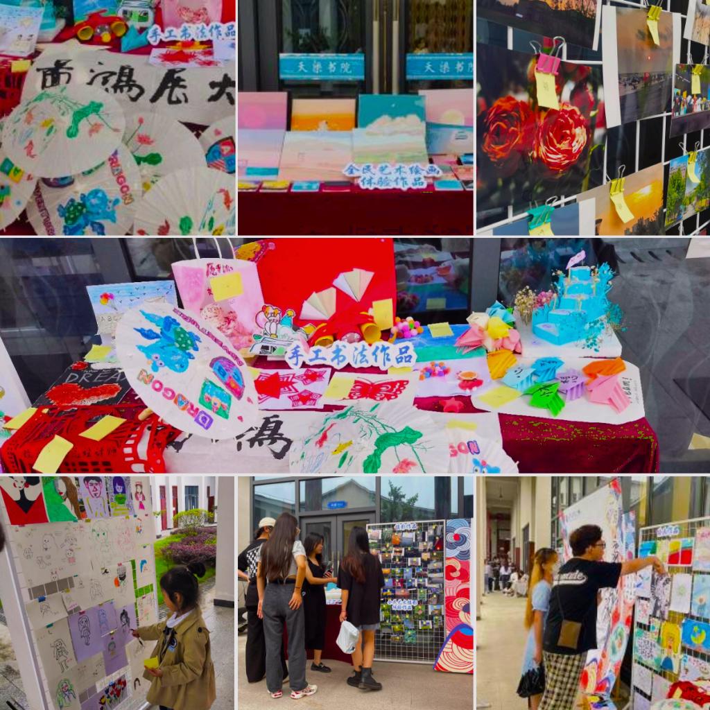 全民艺术绘画体验、摄影体验结束后,我们广泛收集了同学们的艺术作品,择选其中优秀作品在天渠书院110阅览室外进行为期三天的展示。作品围绕活动主题却不仅限于主题,大家敢于展示自己的艺术作品,风格迥异的作品如八仙过海,各显神通。