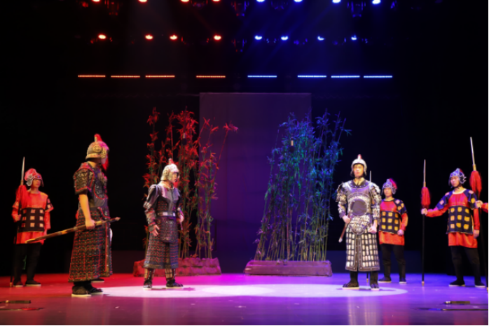 2022年4月22日12:30原创话剧《钓鱼城之汪良臣》在缤果大剧院拉开帷幕。随着音乐响起,威武而神秘的氛围笼罩整个舞台,剧院舞台的帘幕缓缓拉开,讲述着一场跌宕起伏、决定江山归属的历史巨战。一个又一个经典场景不断切换,灯光打在演员们的身上,涌现着保家卫国的决心和视死如归的超然精神,热血、紧张、激愤、感动被演员们淋漓尽致地展现了出来。每一句亢奋的台词都牵动着观众的心弦,每一副戎甲都沾染了演员们的汗水,每一个动作都诠释着对戏剧艺术的热爱,他们的倾情演出展现着别样的艺术风貌,一阵阵掌声是对演员的认可更是对艺术的赞赏,这是一场“人在戏中,戏在景里”的戏剧文化体验之旅。一个半小时的演出可谓高潮迭起,精彩纷呈,演员们精湛的演技赢得了观众阵阵掌声,带动了全场气氛,许多经典台词也引起在场师生的广泛共鸣,让大家体会到了戏剧的魅力,也激发了大学生对戏剧的兴趣。