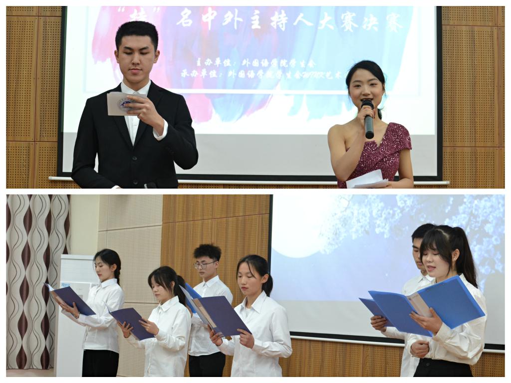 为提升青年大学生的语言表达能力、逻辑思维能力与艺术欣赏能力,为我院爱好主持及有才艺的学生建立一个展现自我的舞台,同时挖掘大学生的特长,亮点,充分展现外院学子风采,特此外国语学院于2022年3月23日14:00在天渠报告厅举行外国语学院第五届“持”名中外主持人大赛决赛。
