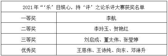 此次乐评比赛历时7天,截止2021年10月29日共征集97份乐评作品,让大家深深地体会到同学们对乐队的热爱以及对于不同音乐的独到见解。经执行器艺术团指导老师周丹、胡慧敏老师初选评出14份乐评作品,后邀请创意写作中心仲心老师进行评审,最终10份优秀乐评作品脱颖而出,其中,一等奖1名,二等奖2名,三等奖3名,优秀奖4名。