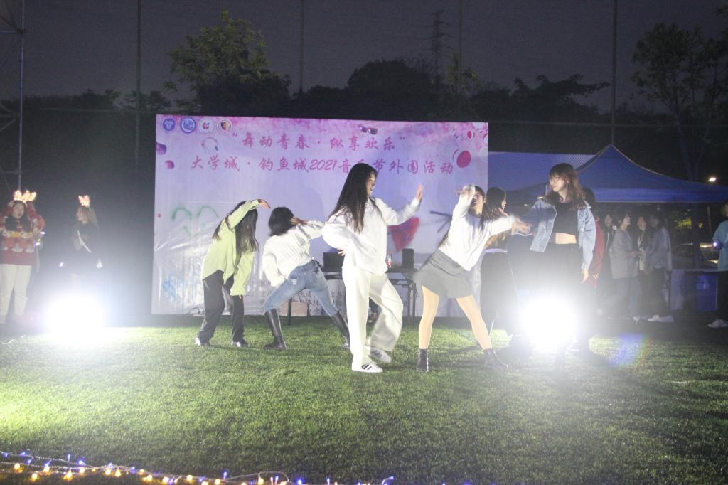 2021年大学城·钓鱼城“舞动青春·纵享欢乐”音乐节外围活动,在欢快的舞蹈表演与娱乐游戏中降下帷幕,每个同学都在本次活动中放飞青春,尽显张扬。作为音乐节外围活动,充分营造了丰富多彩的校园艺术文化氛围,为当代大学生提供了展示自我,踊跃表现的青春风采平台。在欢快的舞蹈表演与娱乐游戏中此次音乐节外围活动降下帷幕。演出时间是短暂的,但带给我们的快乐是无尽的,感谢同学们的参与,让我们记住此时此刻,共同期待明年有更快乐更好的活动。