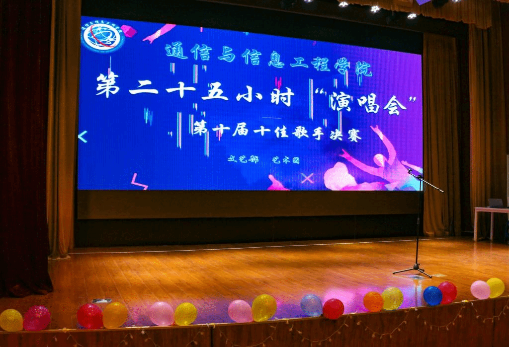 歌声与舞台交相辉映,炫彩与灯光完美融合,一切的一切汇成了音乐的海洋。让心灵放飞,让我们陶醉。2021年10月16日于我校下里巴人剧场举办了一场非同凡响的视听盛宴——通信与信息工程学院第十届“第二十五小时演唱会”十佳歌手决赛。