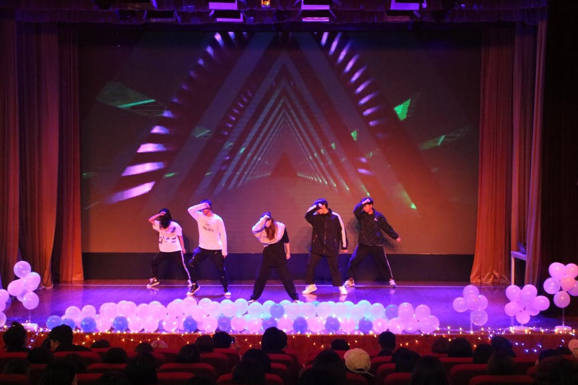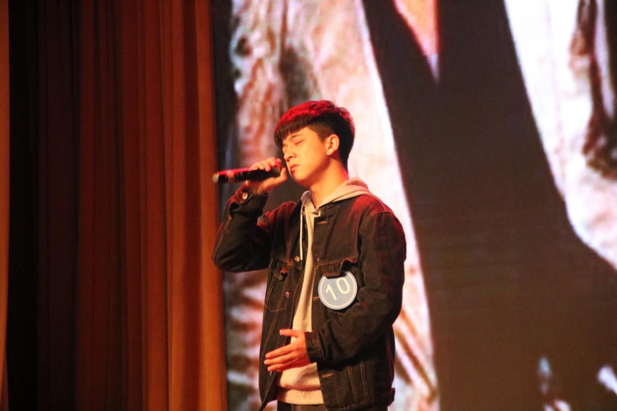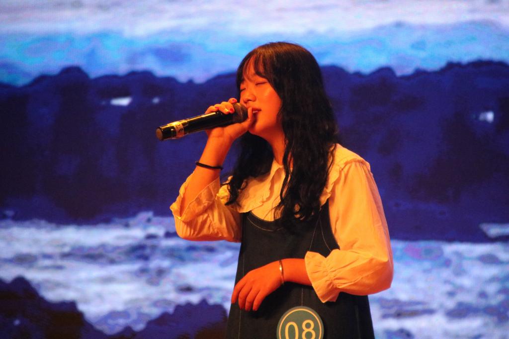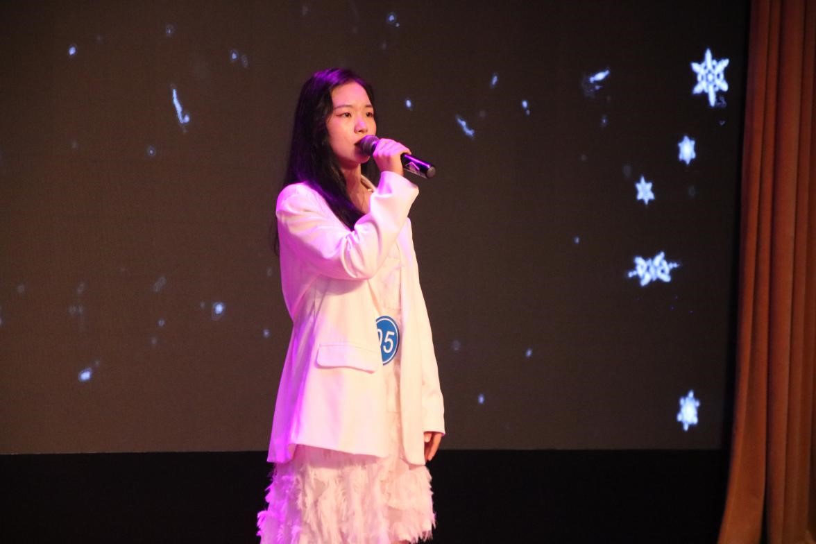 经过初赛、复赛的激烈角逐,12名优秀选手脱颖而出,尽管准备时间非常急促,他们依然给听众们带来了一场音乐盛宴。一支炫酷的开场舞瞬间点燃现场,主持人随即宣布比赛正式开始。第一环节—群星荟萃,选手们依次带来一首3—5分钟的个人风采表演。二号选手张丹泥演唱的《我曾经也想过一了百了》以不甘被生活磨平棱角,不甘命运仍旧乐观面对生活的正能量心情像一束黑夜中的光芒,照亮台下每一位听众。五号选手张雪《skinny love》的演唱单词发音标准,吐词清晰,音准把控的拿捏深得评委老师们的好评。 八号选手张连欣带来的是Hush!的曲目《第三人称》,歌词“天真以为是他的独特品味,字母画面分割上演谍对谍”其意思回味起来就如同它的歌名一样以第三人称的视角从另一个角度审视自己,品味自己。