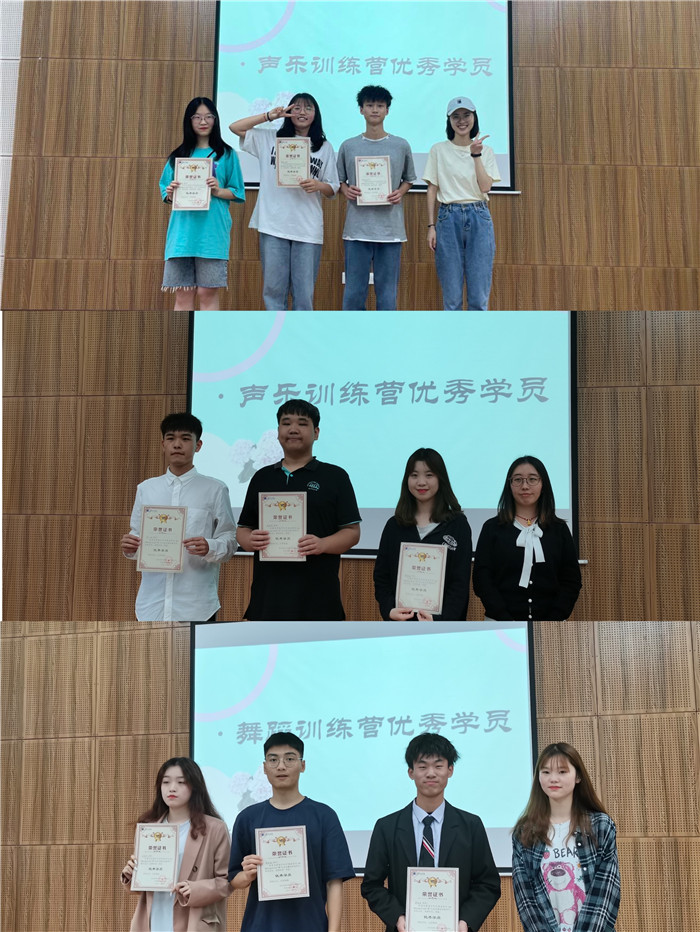接着,由外国语学院艺术分管主席杨晓莉学姐为大家进行了活动总结,杨晓莉学姐主要从本学期训练营活动的活动简介、活动现状、活动意义等三个方面进行总结,并对下学年的声乐、摄影、表演等等训练营主题进行了简单的预告。另外,在本学期的训练营中涌现出一些优秀的学员,他们将自己的专长合理利用,为外国语学院的长久发展做出贡献,发挥了榜样力量。特为滕艳姿、官一品、喻俊钦、刘婷、李光林、李睿、李俊松、解喜越、王若丁九位学院颁发“优秀学员”的荣誉称号。