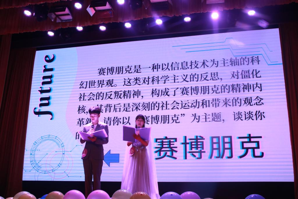 进入第二环节,十位参赛选手提前抽签决定分组,在承办方给出的5个时下热词——“赛博朋克”、“建党100周年”、“代孕”、“女权”、“抑郁症”中,现场进行舞台大屏幕随机抽选,最后根据所抽热词,每组进行现场3—5分钟主持。主题虽是临时抽取,但选手们依然台风稳健,发挥如常,配合默契,让人不禁叹服于选手们深厚的主持功底。随后,在打分组统计选手得分的间隙由淬炼商学院的刘文蔚同学为现场的各位评委、观众以及选手带来了一首激昂的《Outside》,希望晋级的选手能够在第三轮再接再厉。最后经过激烈的角逐,五名选手成功进入第三轮。