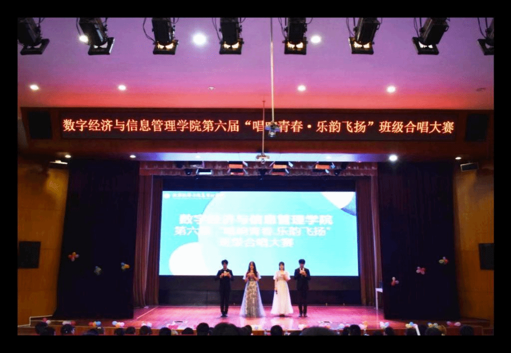 音乐作为艺术必不可少的一部分,是我们生活的调节剂,也是我们心灵的彼岸,为了让正值青春的我们拥有一个更加美好的精神家园,也本着用音乐来增强班级的凝聚力,让同学们感受到艺术的氛围,更好地打造优秀班集体的目的,我院于11月7日15时在下里巴人剧场举办数字经济与信息管理学院第六届班级合唱大赛。本次大赛邀请到爱莲发展导师叶芳老师,学工办主任兼团总支书记及竞技体育板块指导老师廖阳老师,数字经济与信息管理学院校园社团活动板块指导老师彭薇薇老师,就业指导板块老师王瑞老师、周利娜老师,学生书记白小千、冯杰。此次大赛共有17个班级参加。