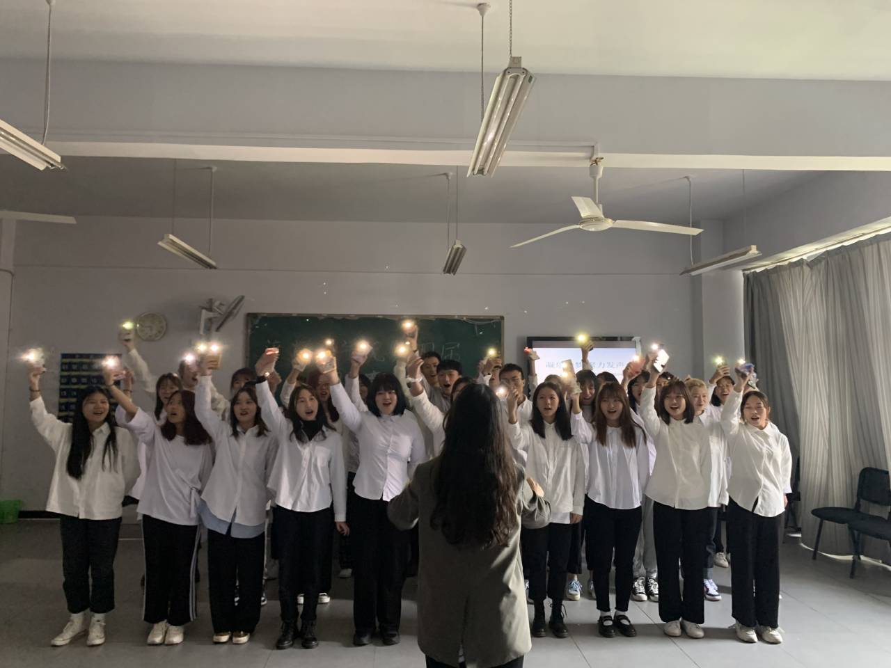 在第一组的同学表演完后第二组的同学已经在教室外迫不及待想要上场了,第二组带来的歌曲洋溢着青春的色彩,彰显着梦想的力量。工管四班带来的《后来》最为突出,他们用响亮的歌声,整齐的动作,激情的朗诵,反差的结尾将青春的酸甜苦辣表现得淋漓尽致,获得了场下同学的热烈掌声。对梦的追逐是我们不能停下的脚步,虽然梦在远方但我们作为当代的大学生更应该以梦为马、不负韶华。