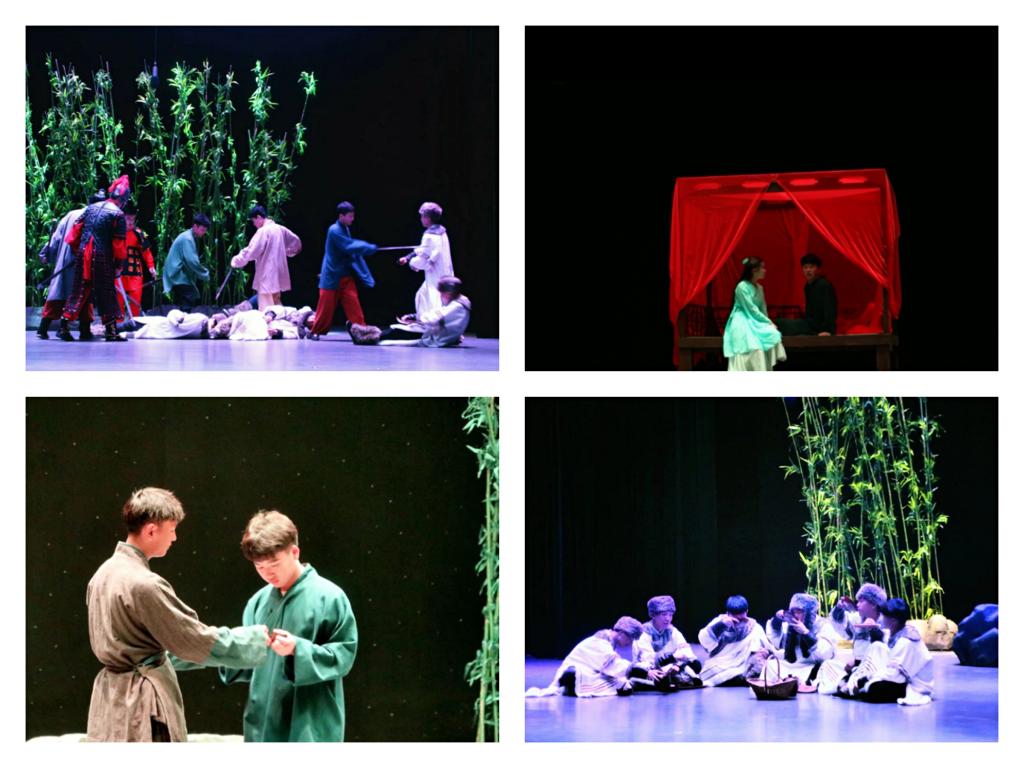 “戏如人生,人生如戏”。在去年的戏剧节上,我院学子在缤果大剧院的舞台上倾情演出戏剧《钓鱼城之王立》。他们的表演为我们展现了不一样的艺术魅力,其魅力是戏剧本身的艺术风貌,是演员们在舞台上的情感倾述,是观众收获到的独特体验,是同学们背后日以继夜的辛苦付出。为了呈现最好的表演,同学们早在一个月前就开始紧张的排练。绕口的台词,饱满的情绪,动作的设计。一次又一次的摸索,反反又复复的背词,日日又夜夜的练习,从黄昏夜幕到晨曦鸟鸣。最终披上戎装,忠君为国、杀身成仁,演绎一代英雄传奇!品一出戏剧解苦恼烦事,哼一两句享人生趣事。一年过后,王立的故事依然在商院述说着。演员们用自己独特的艺术语言诠释校园戏剧节,为同学们重塑对戏剧节的全新认知。