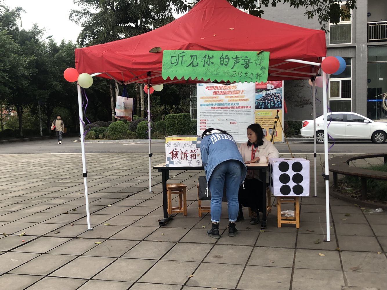 每个人都会碰上低谷的时候,而在这段时间,我们需要做的就是坚持补充能量,寻求方法,然后再好好崛起。11月13日,由艺术传媒学院团总支学生会女生部承办的“听见你的声音”倾听、倾诉烦恼的活动在一二教广场黄桷树下拉开帷幕。