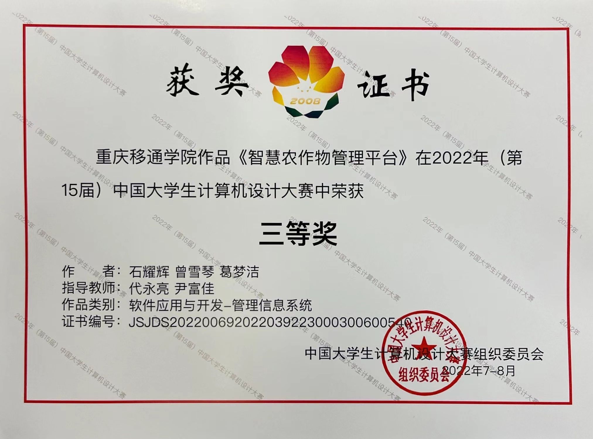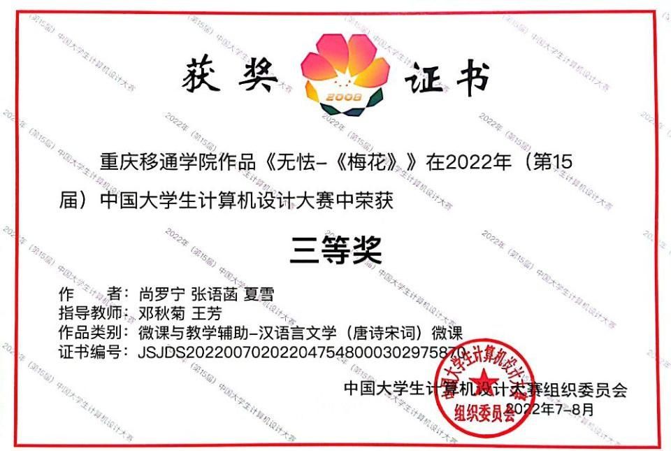 我校斩获2022年(第15届)中国大学生计算机设计大赛奖项8项