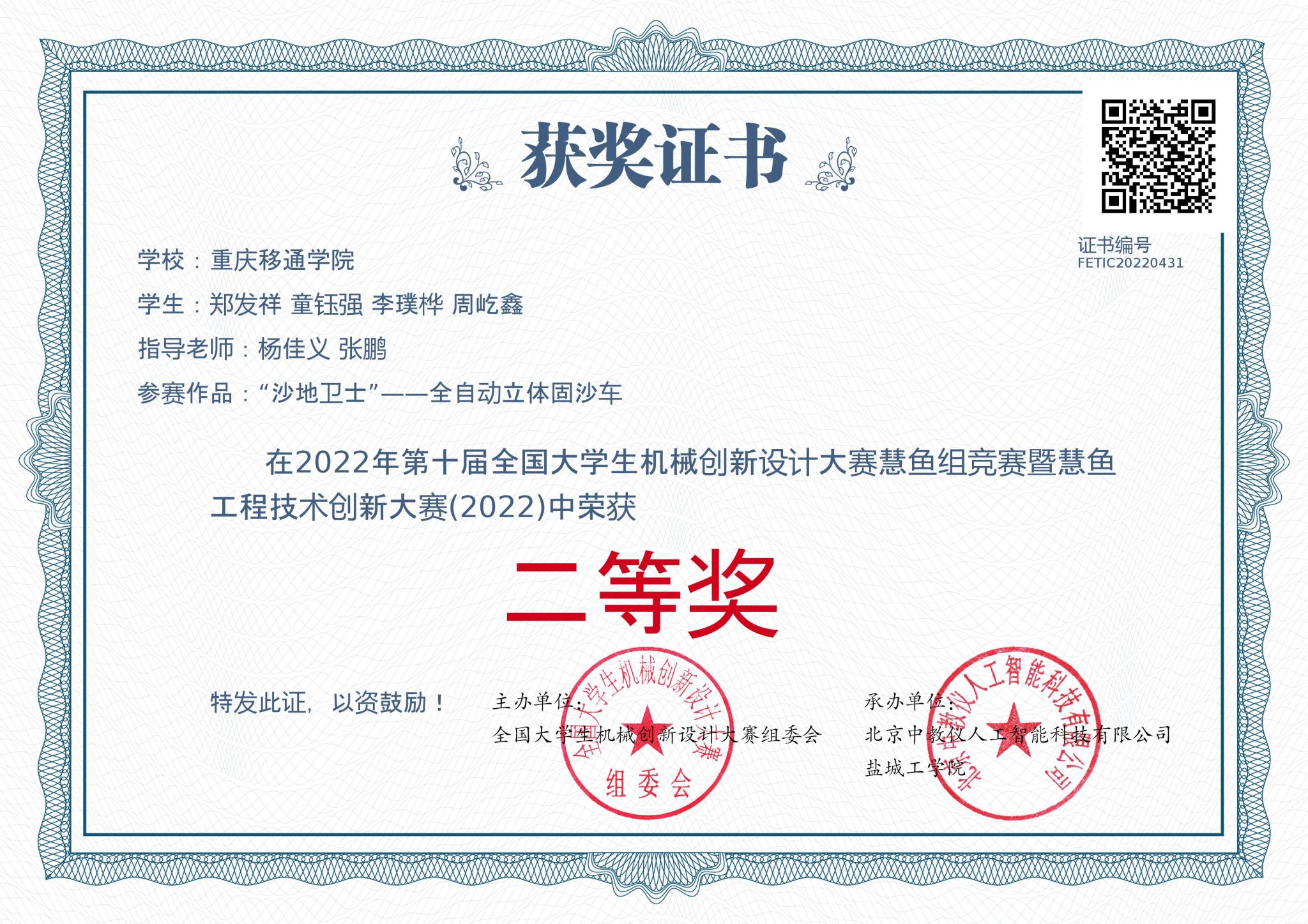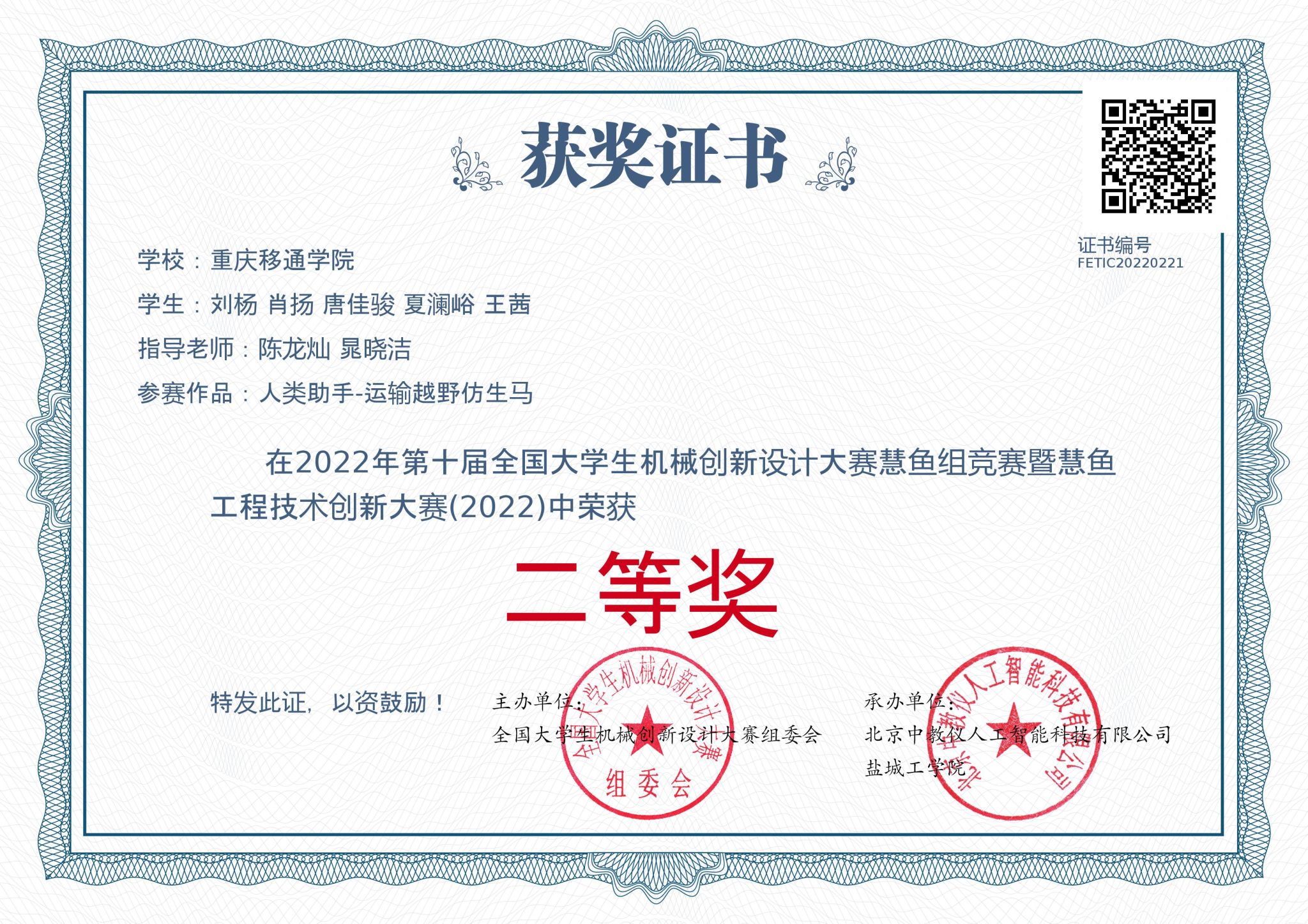 我校获2022年第十届全国大学生机械创新设计大赛慧鱼组竞赛暨慧鱼工程技术创新大赛(2022)一等奖
