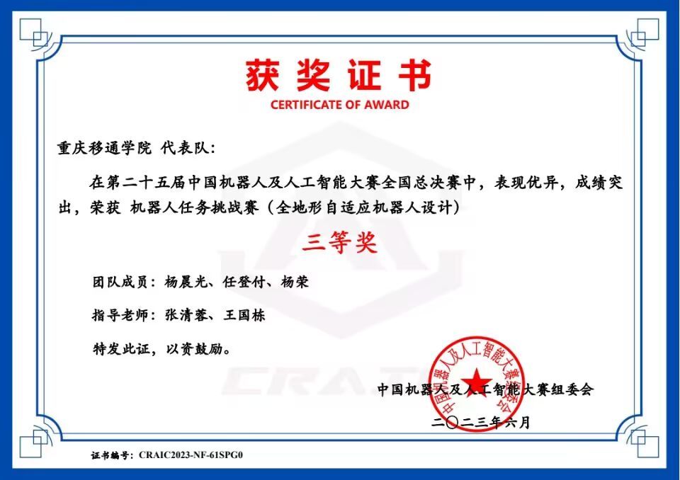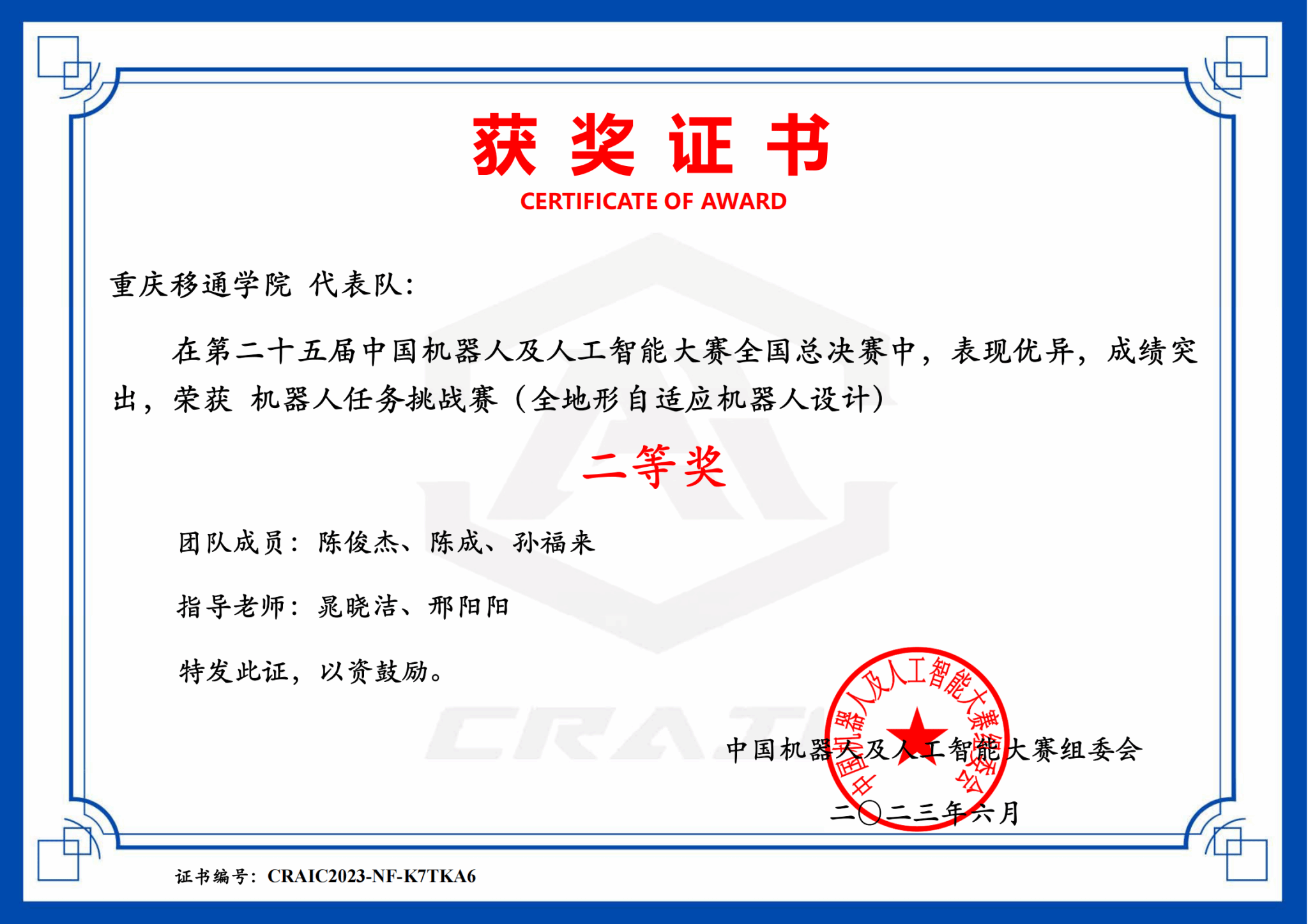 我校获第二十五届中国机器人及人工智能大赛全国总决赛二等奖