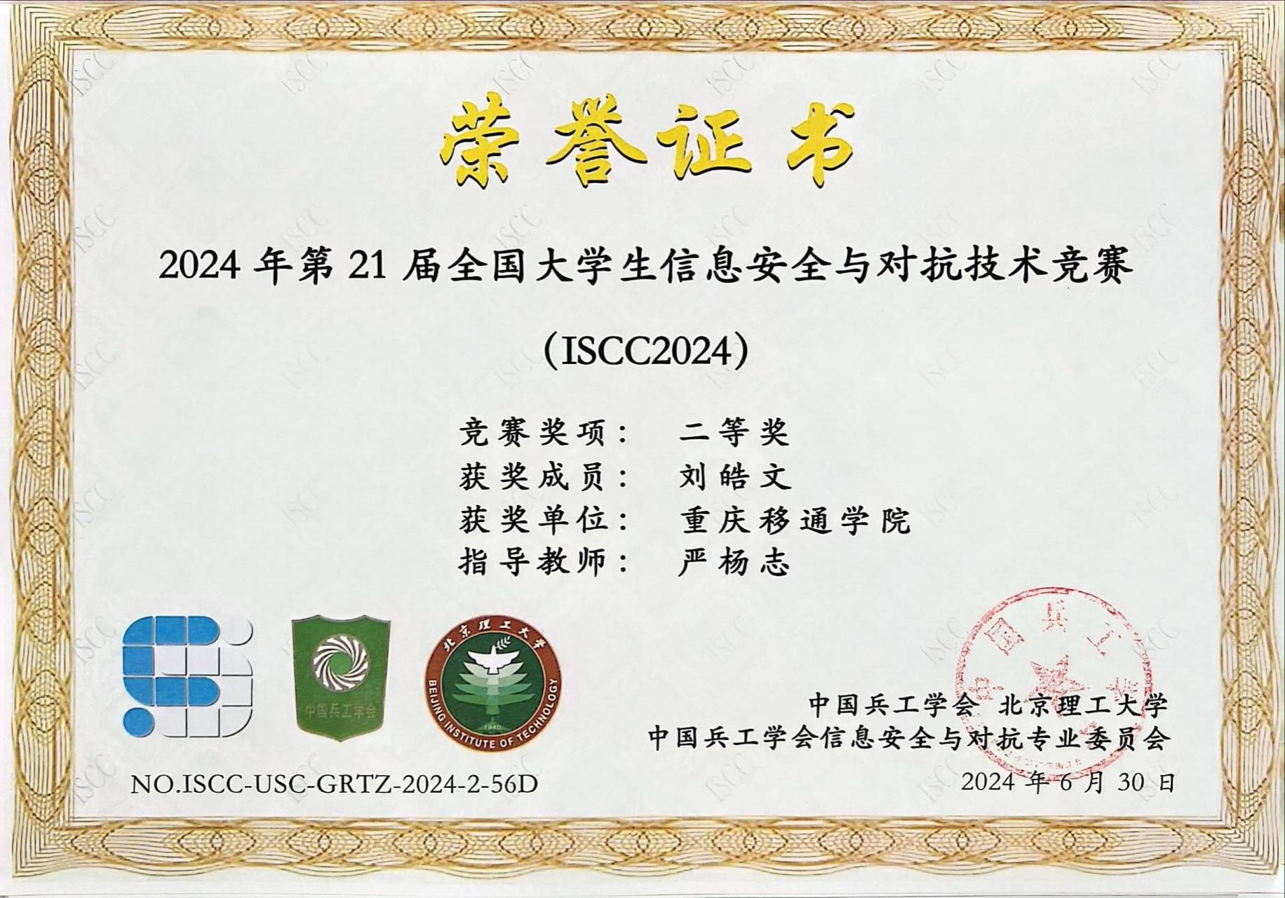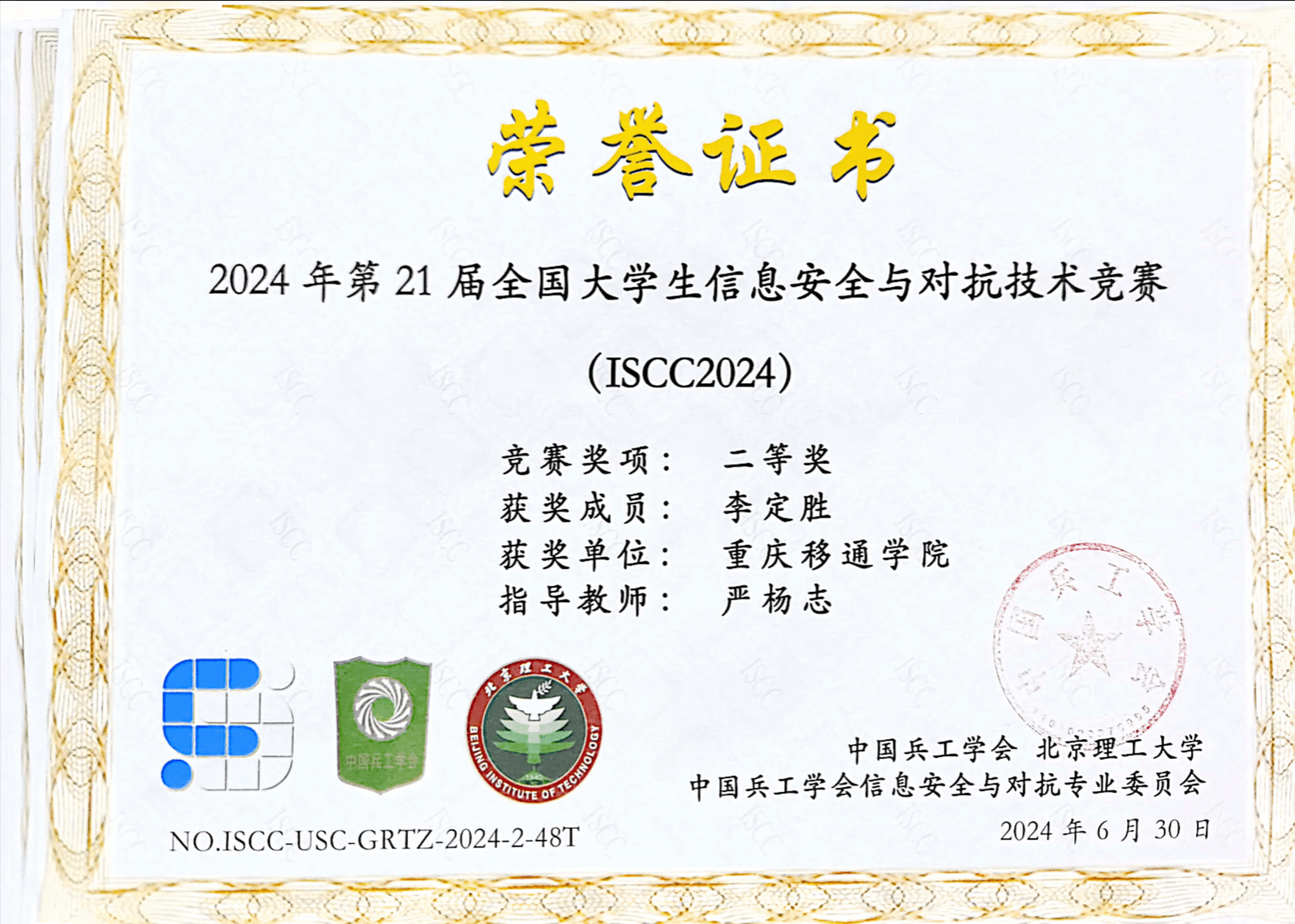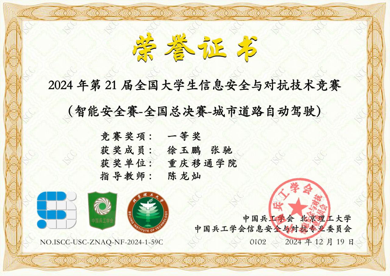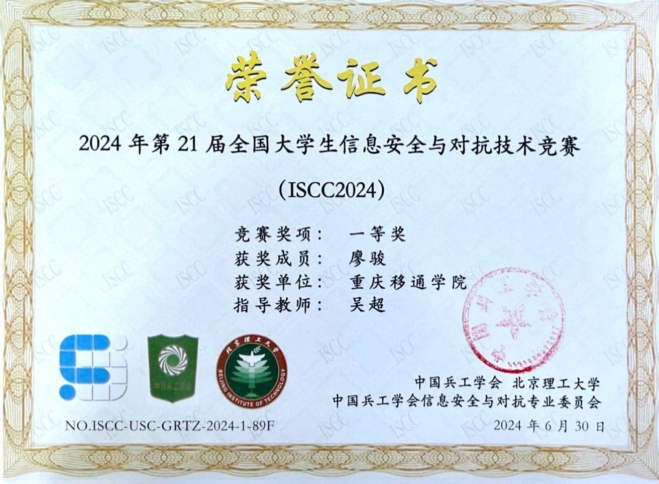 我校获2024年第21届全国大学生信息安全与对抗技术竞赛全国一等奖