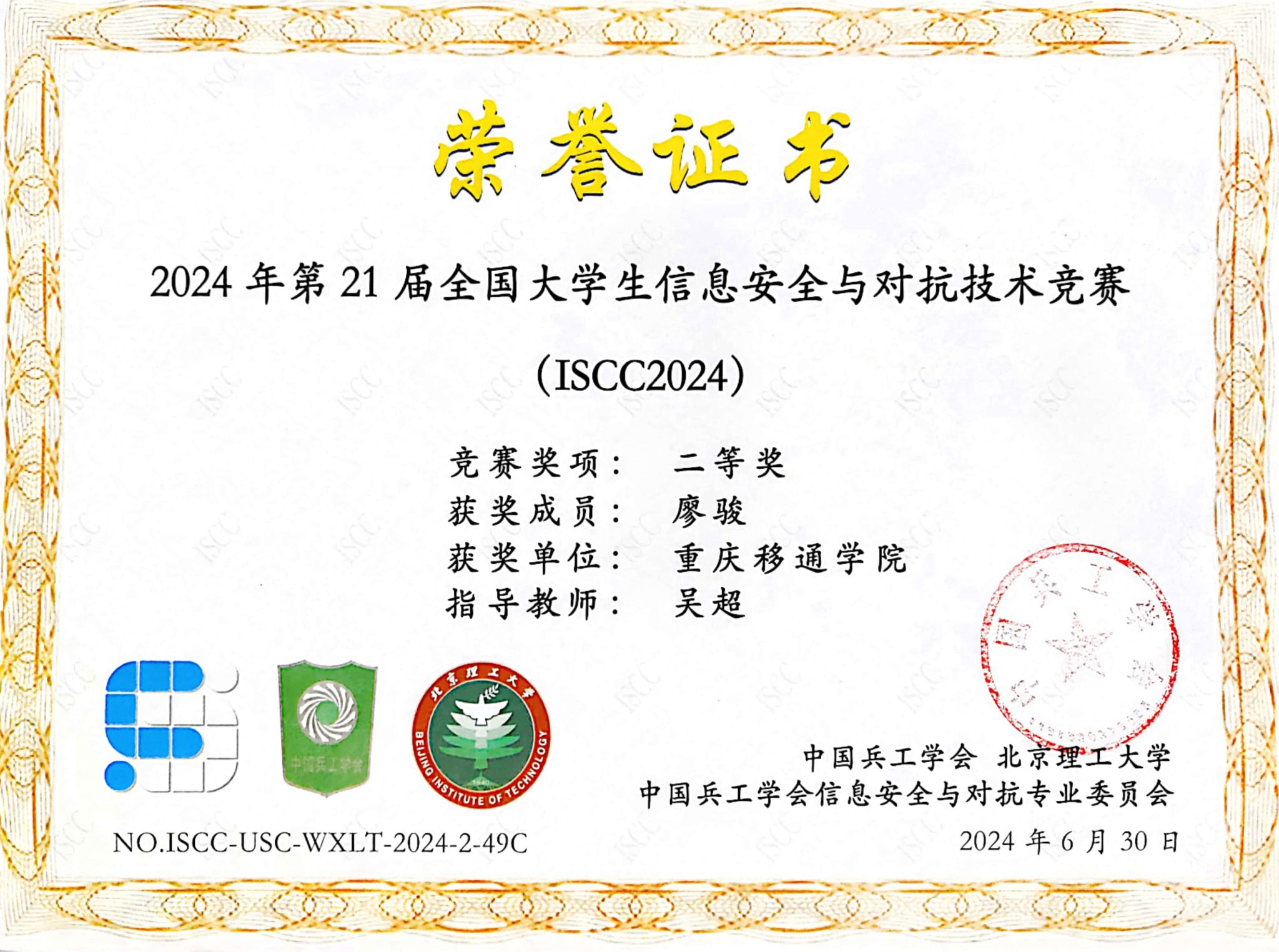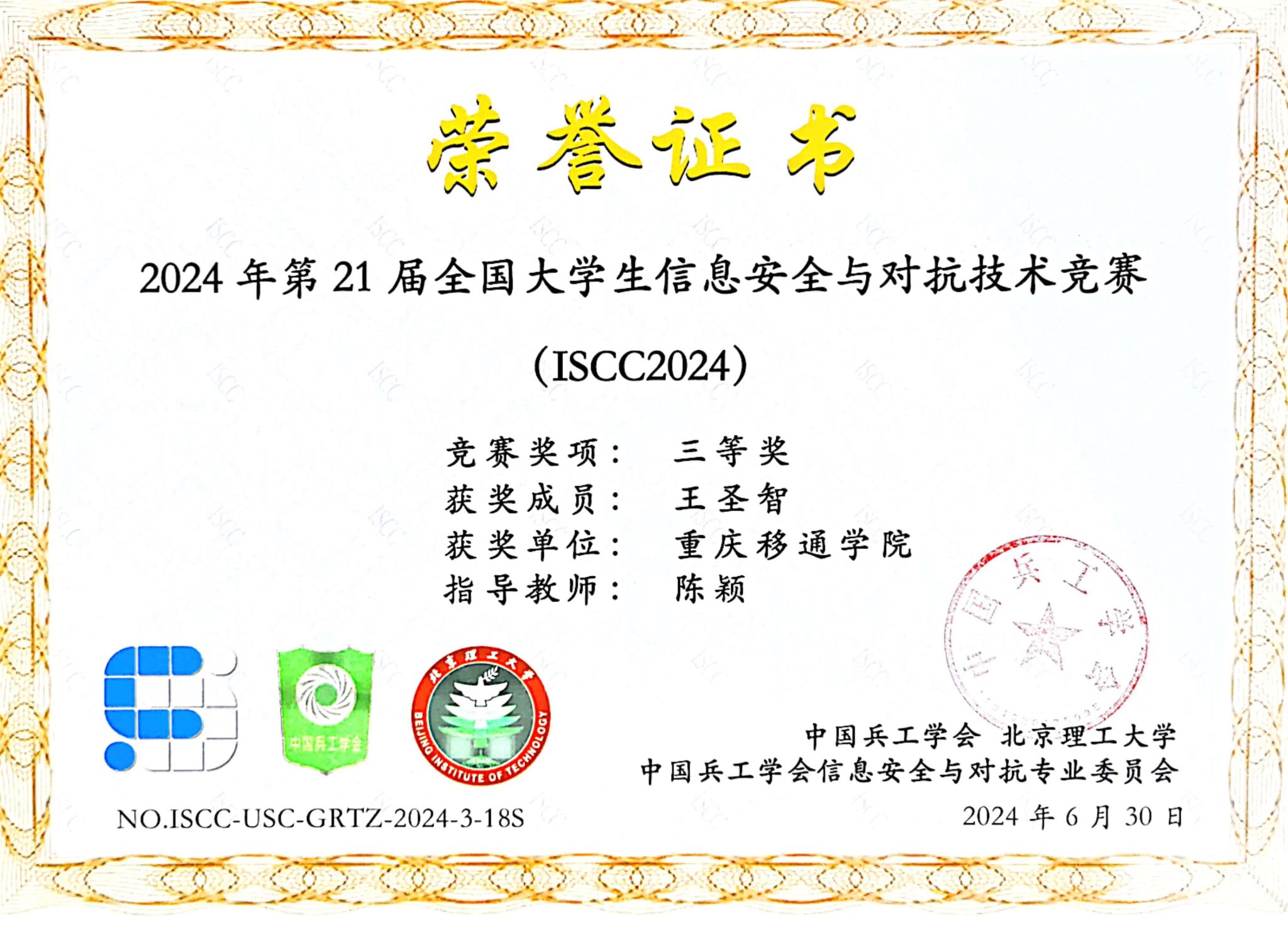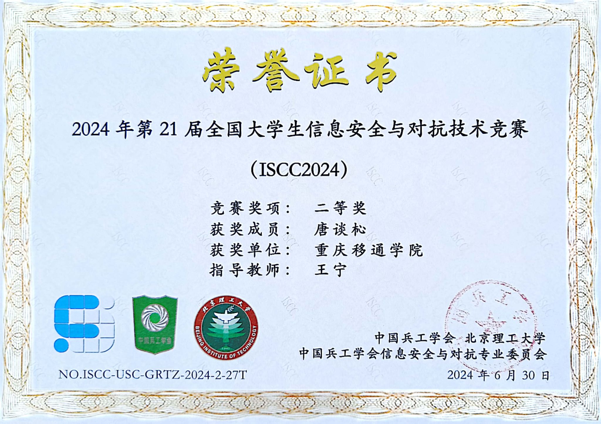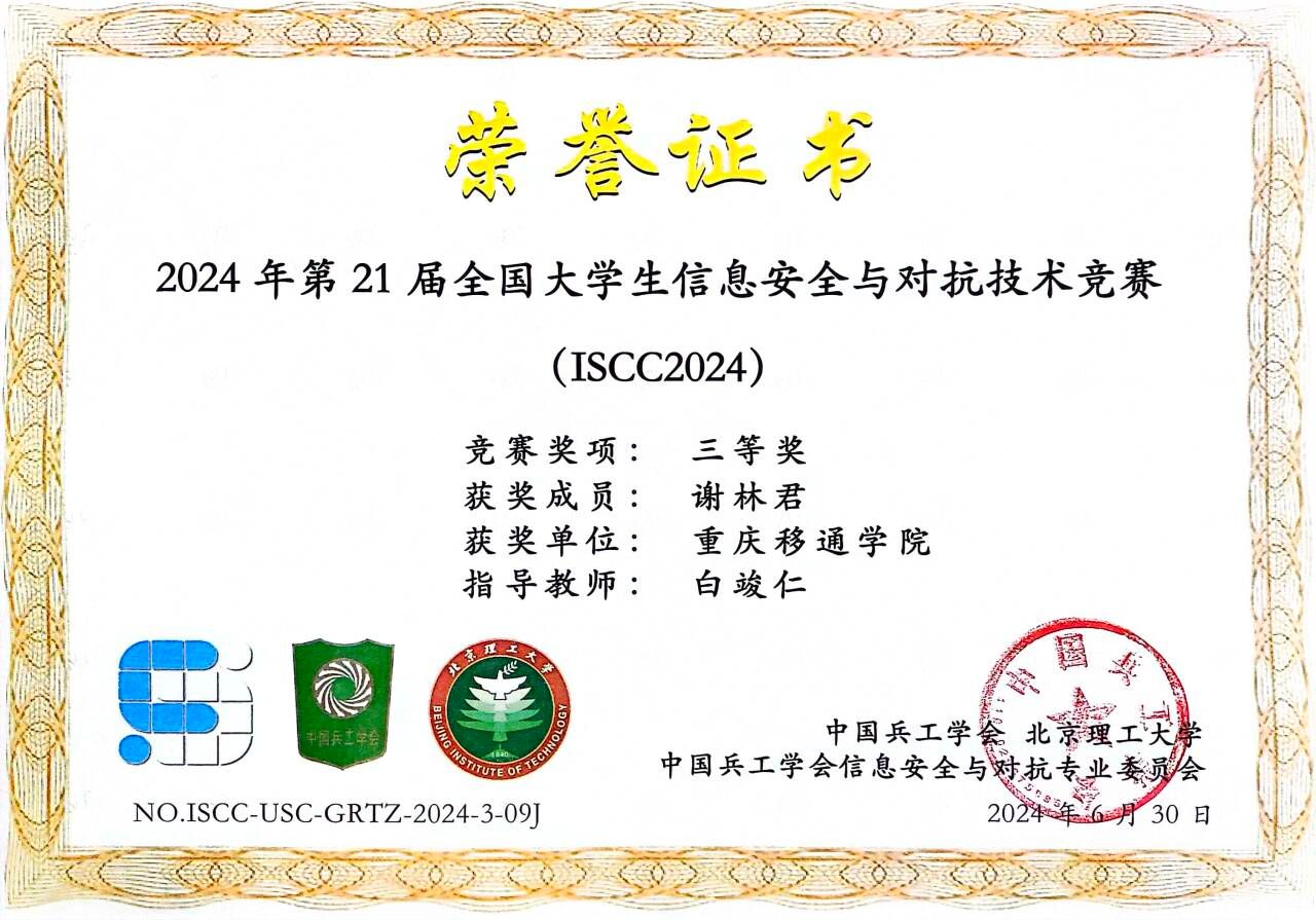 我校获2024年第21届全国大学生信息安全与对抗技术竞赛全国一等奖