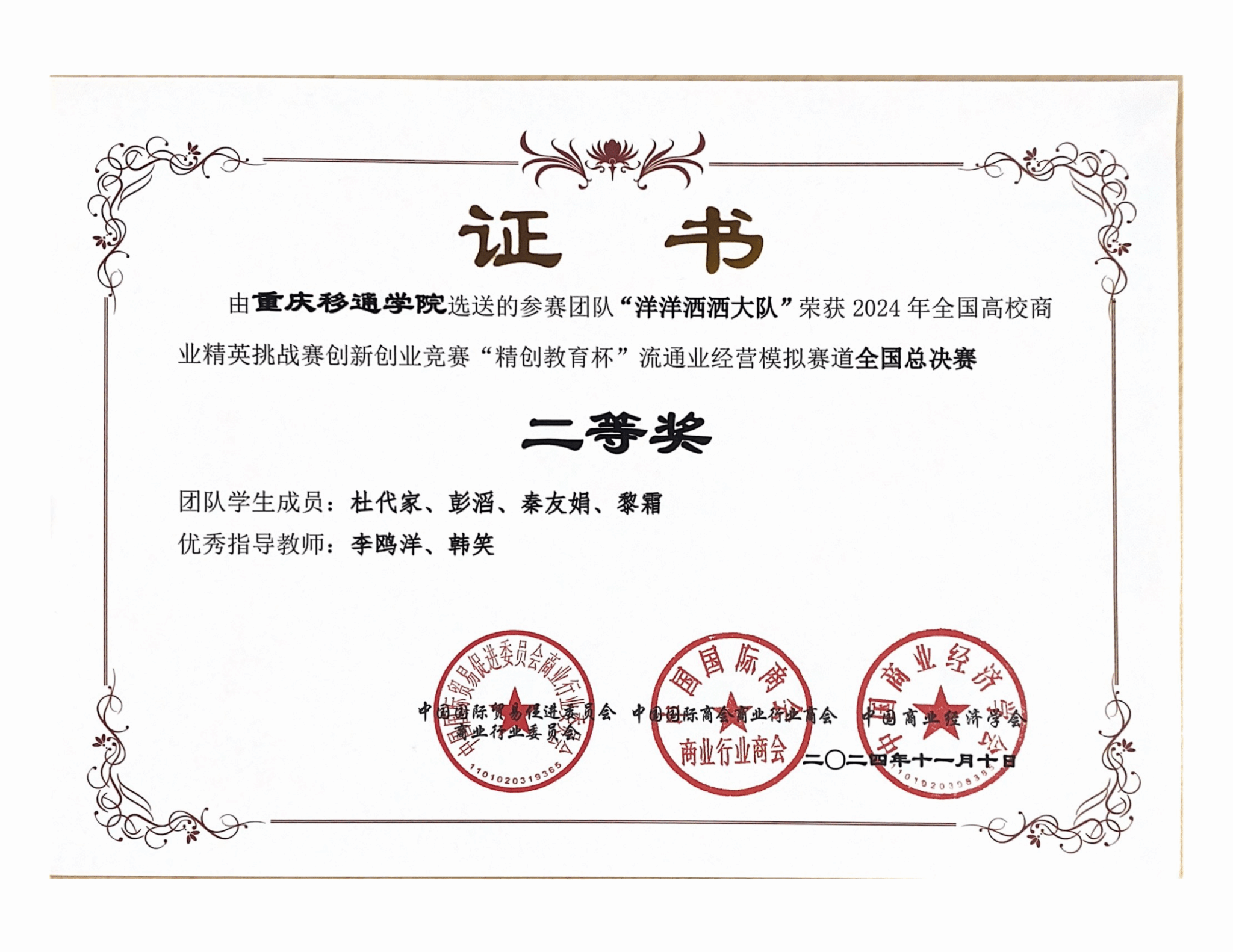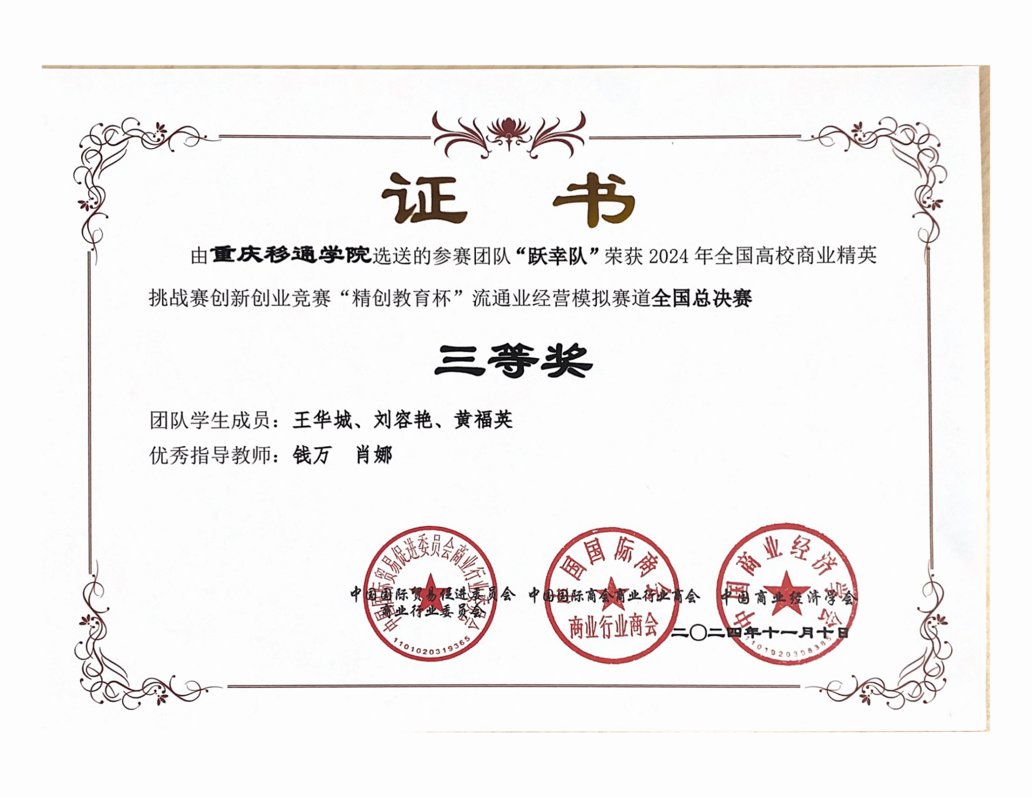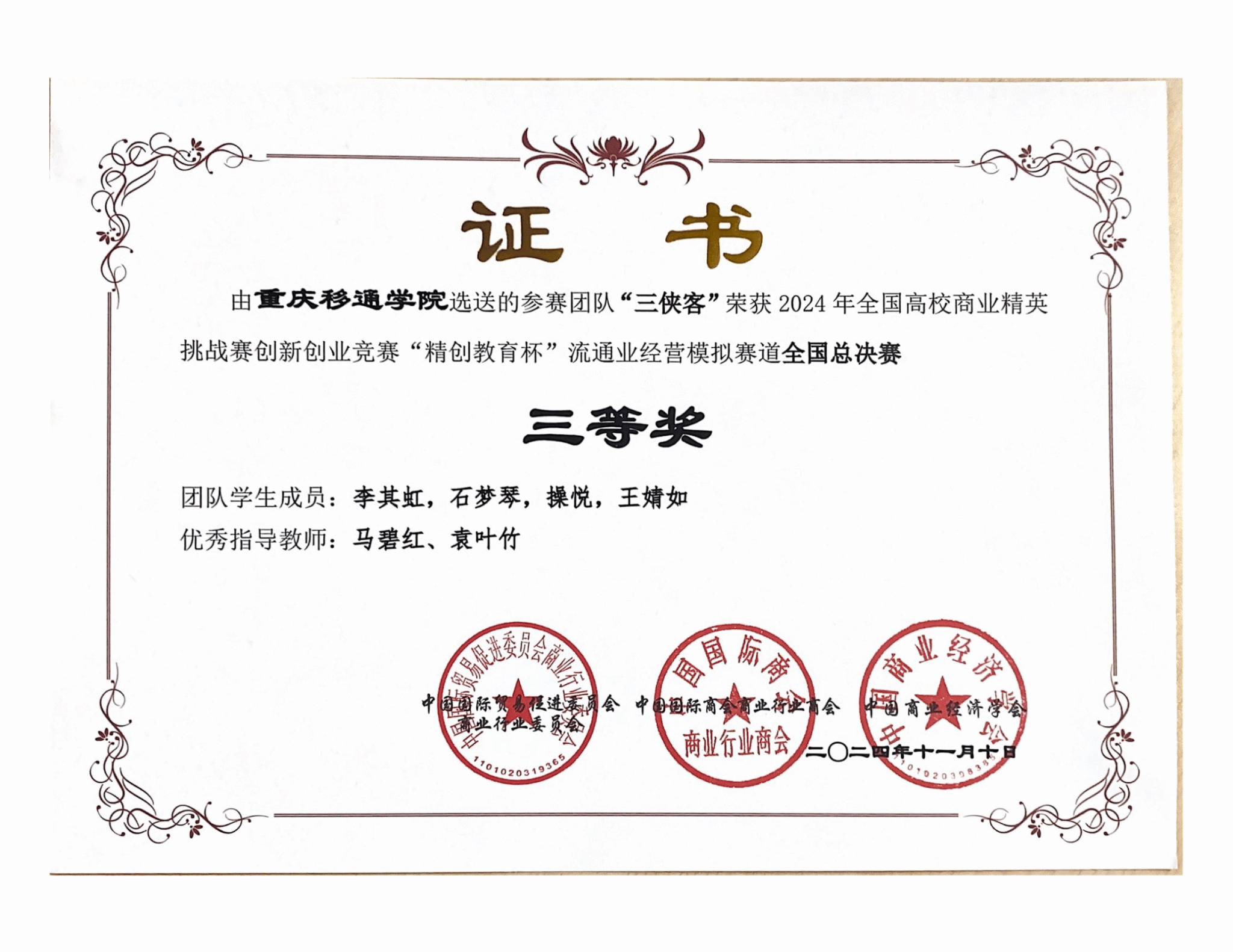 我校获2024年全国企业竞争模拟大赛三等奖