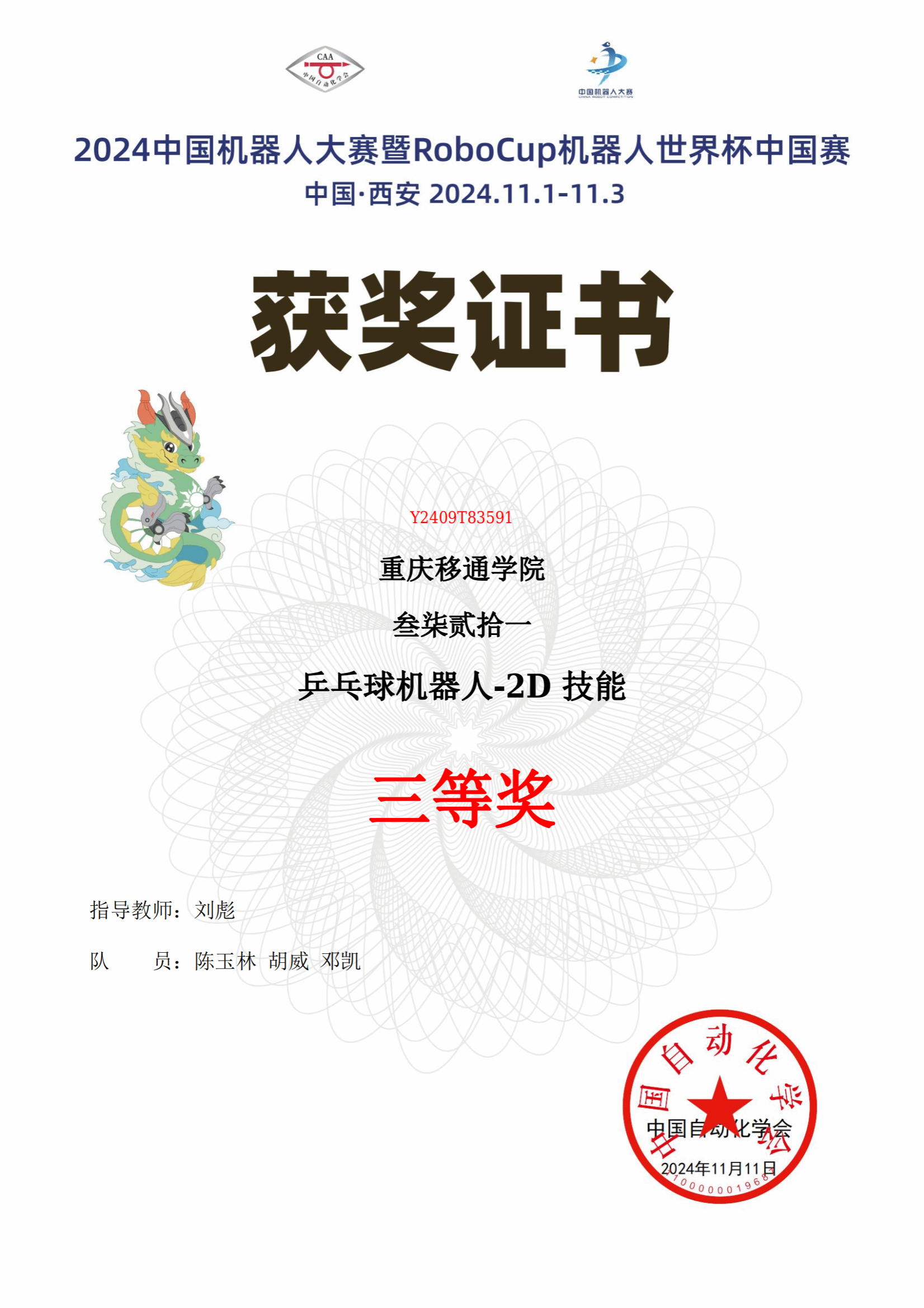 我校获2024年中国机器人暨RoboCup机器人世界杯中国赛一等奖