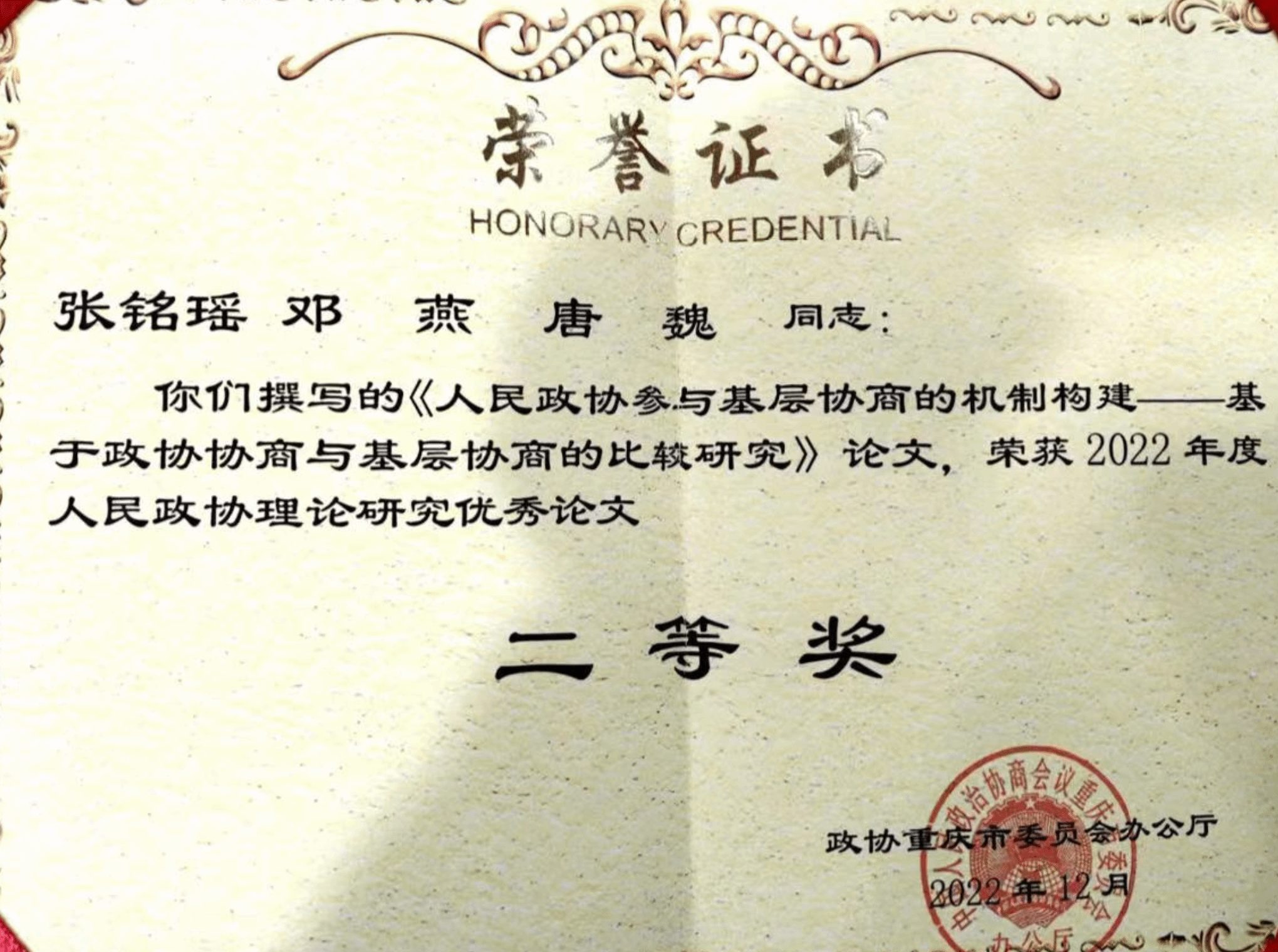 我校老师获2022年度人民政协理论研究优秀论文二等奖
