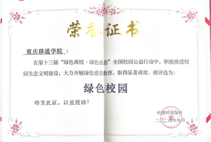 我校获第十三届“绿色离校·绿色感恩”全国校园公益行动-绿色校园