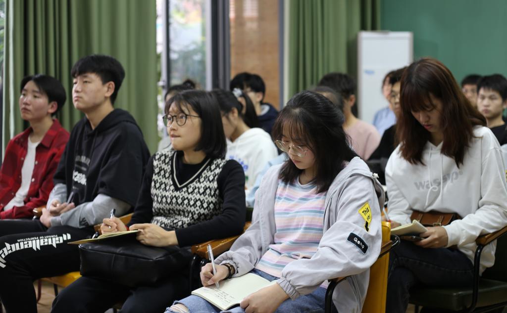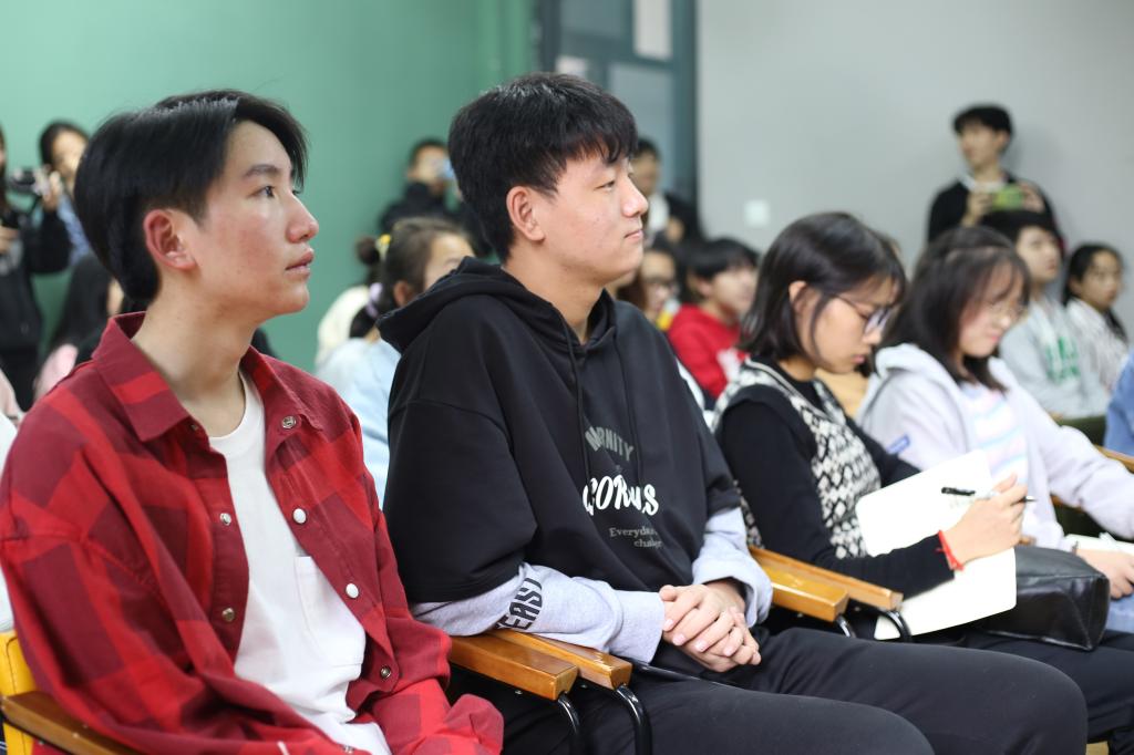 同学们听得津津有味,不时点头,但其实他们大多人并不是该专业的学生,对于“这堂课”他们更多的是兴趣使然。他们在和杨老师的沟通交流中学习到了实用的艺术鉴赏知识和拍照技巧。刘稀同学便是其中一员,他是2020级软件工程专业的一名学生,但对影视制作有着浓厚的兴趣。从前的他只能从看看教程和相关书籍,但在这次花果兴趣养成记项目中,他体会到了朋辈互助的力量。他说道:“如果今天没参加这项活动,我以后也会叹息着感慨自己曾经的梦想,而不是真正地去行动。杨老师专业性和周围同学们的认真都感染到我!”还有些在学生组织里任职的同学们,活动中的摄影摄像就是他们的工作,例如来自淬炼商学院的冉红梅同学,她说道,“以前部门里的培训都是独立软件或者是短期的技能型培训,没有像这次兴趣养成记一样形成长期的项目,在这样长期里的项目,我感觉更能梳理知识脉络,也能把之前培训中零散的知识点串起来。”