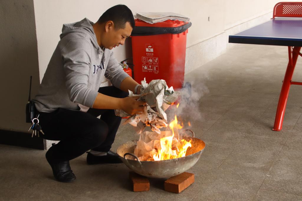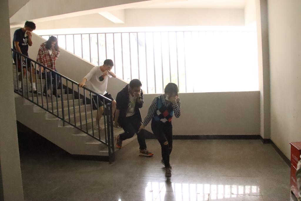 正式消防演练前,保卫处副处长彭洪就火灾的基本情况、消防报警的注意事项、干粉灭火器的正确使用方法以及火灾有效疏散方法作出了详细的介绍。在警报声响起后,各师生按照本次消防演练的相关流程安排,由艺术传媒学院学工副院长李克伟带领着师生们分别从前后门、迅速有序紧急撤离。各同学用湿纸巾,湿衣服捂住口、鼻,放低身体,到达指定位置后按照指挥,整齐有序的排列好队形。