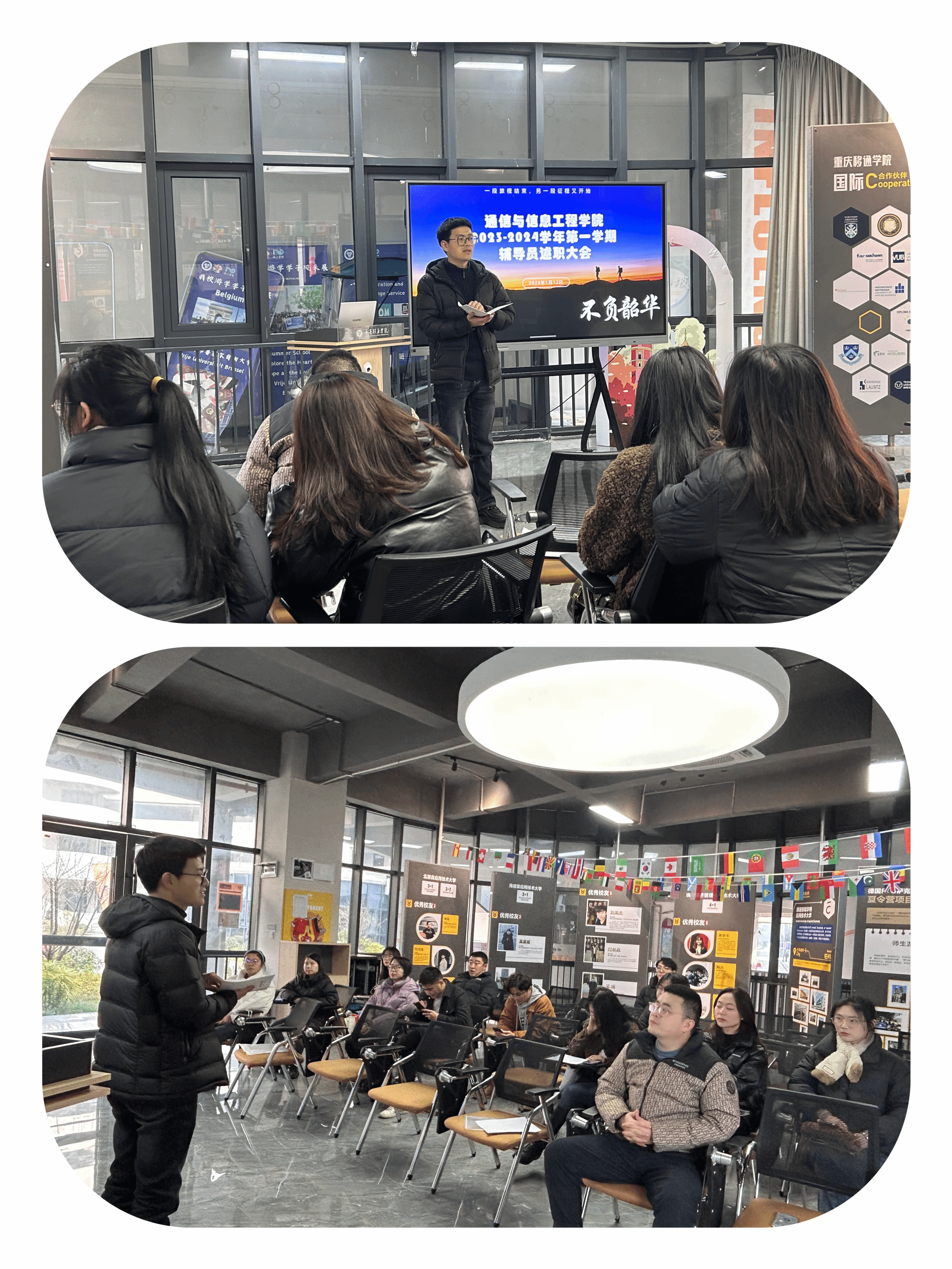为切实加强学院辅导员队伍建设,梳理工作经验,增强育人实效,推动通信与信息工程学院学生管理工作高质量发展,2024年1月12日中午12时,通信与信息工程学院院于南湖书院召开2023-2024学年第一学期辅导员述职大会暨2024年学生工作部署会议。