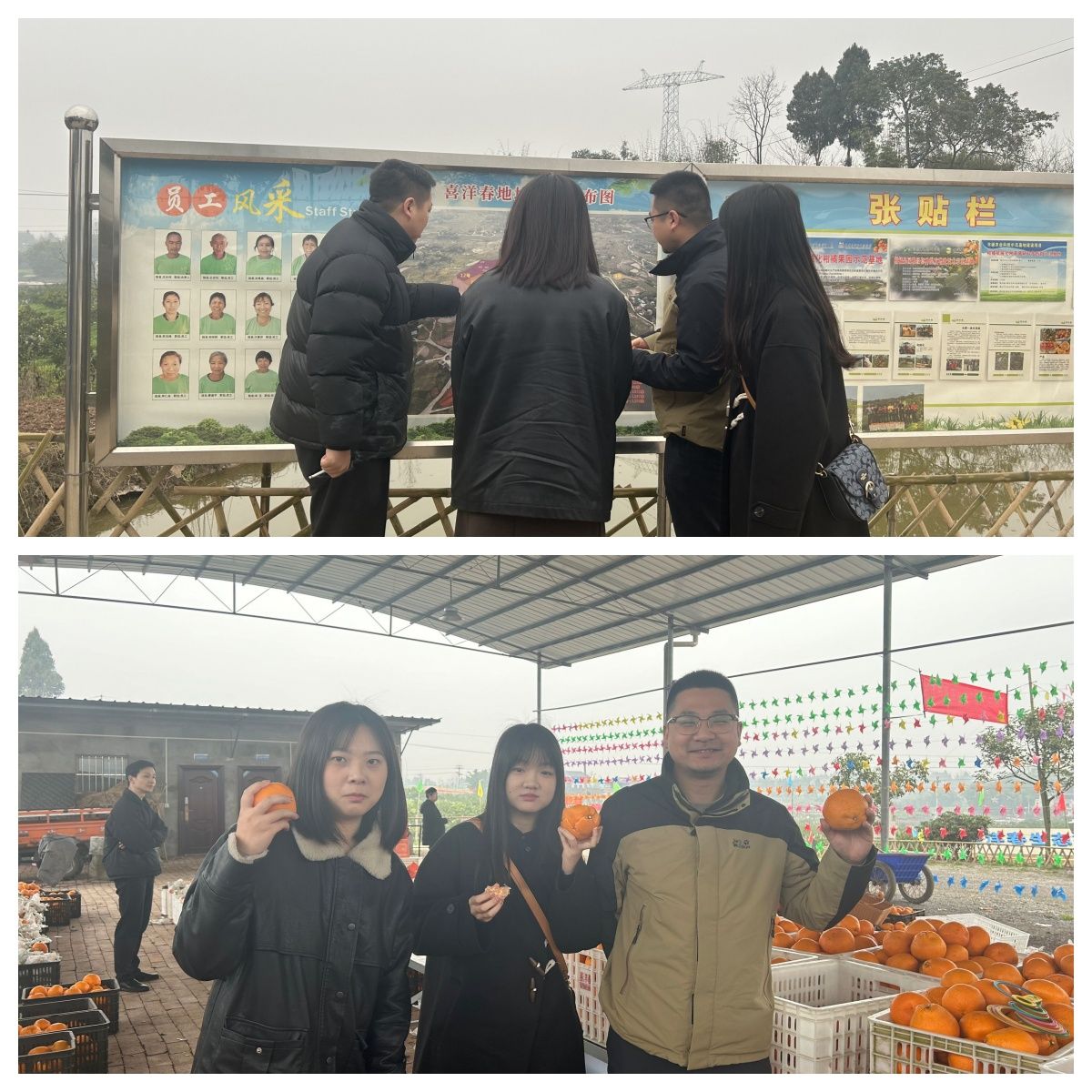 为贯彻落实教育部等十部门印发的《全面推进“大思政课”建设的工作方案》,善用“大思政课”,向“社会大课堂”拓展,引导和帮助大学生上好与现实相结合的“大思政课”,在社会课堂中受教育、长才干、作贡献,全面履行为党育人、为国育才的使命。3月8日上午十点三十分,马克思主义学院中国近现代史纲要教研室主任李阳携唐菊相、杨佳欣、李汶静三位老师前往合川区钱塘镇喜洋春大雅柑橘园进行实地调研,为后续拓展和建设劳动教育实践基地做准备。