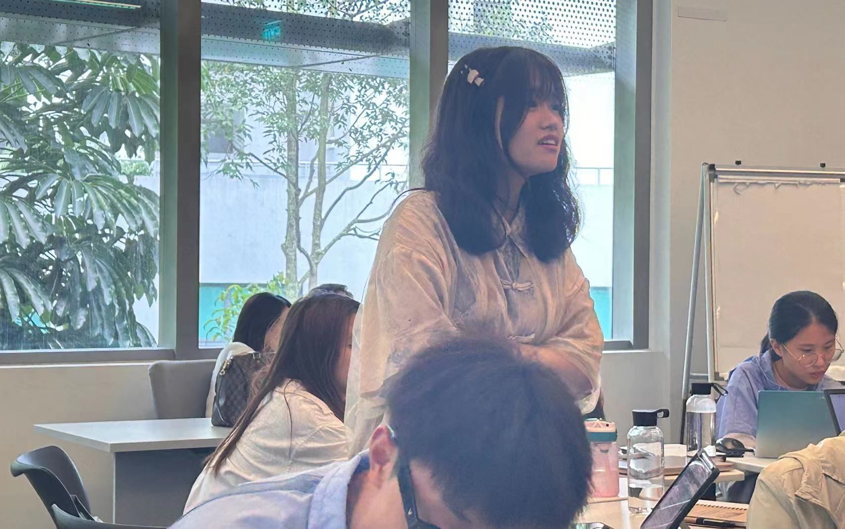 而后通过提问的方式,让同学们思考生活中的创新。通过对学生所给出的答案进行巧妙结合,向我们阐述了创新力的不同层面,以及创新力可以用于任何领域,使我们明白了创新力的重要性。最后,蔡教授让我们带着三个问题,以小组观看创新力的视频。他鼓励学生们摒弃传统思维,大胆尝试新的方法和理念。学生们积极互动,分享自己对创新的理解和想法,将课堂变成了一个充满活力和启发的思想交流平台。