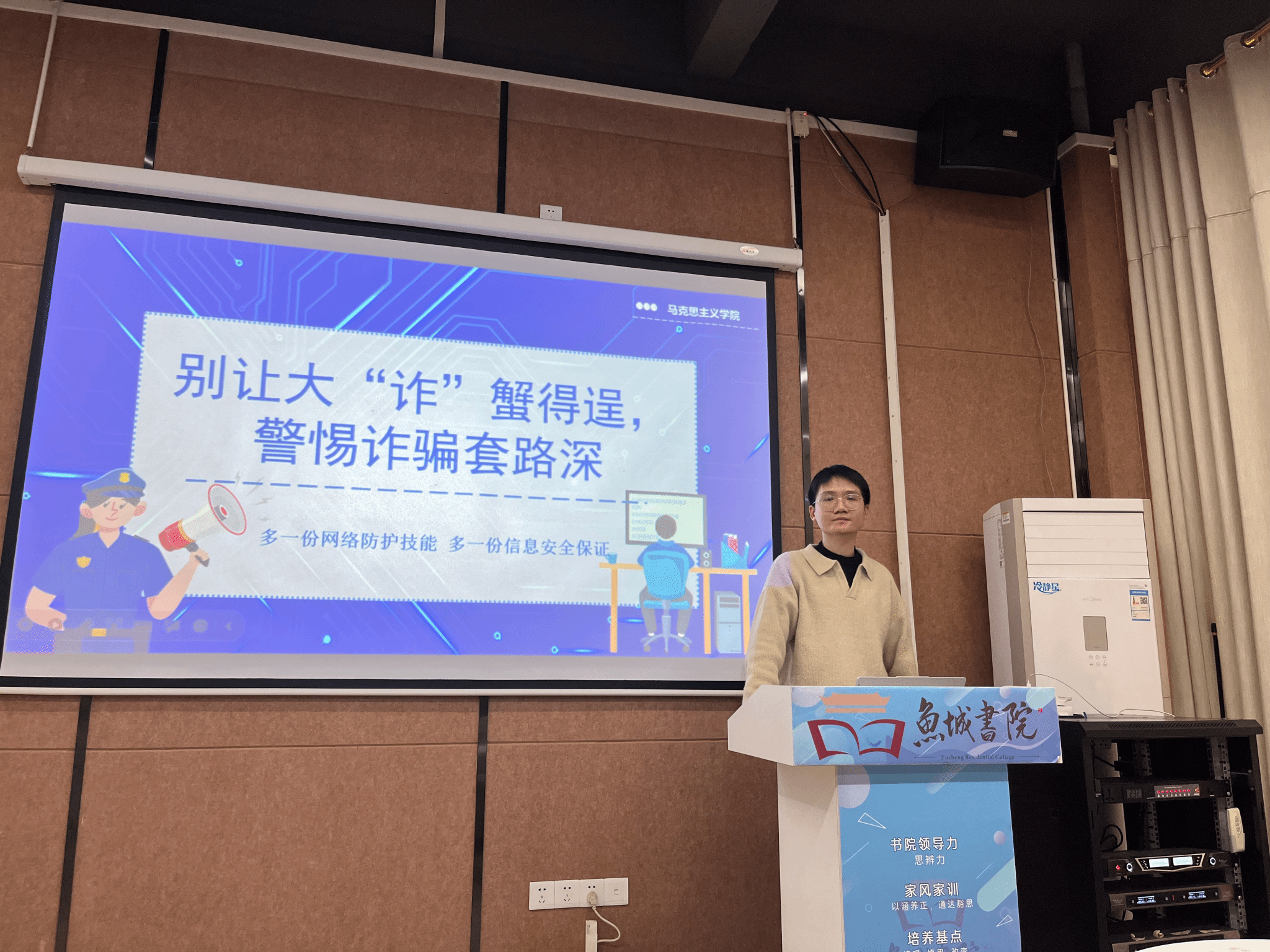当下信息社会高速发展,诈骗花样层出不穷,网络诈骗分子的手段也越来越高明。2023年11月8日14点,为提高大学生防范诈骗意识,做到切实保护自身权益,马克思主义学院联合鱼城书院,在涂强、龚魏锌和吕利林老师的组织下,举办了全民思辨工坊第23期活动——“别让大‘诈’蟹得逞,警惕诈骗套路深”。