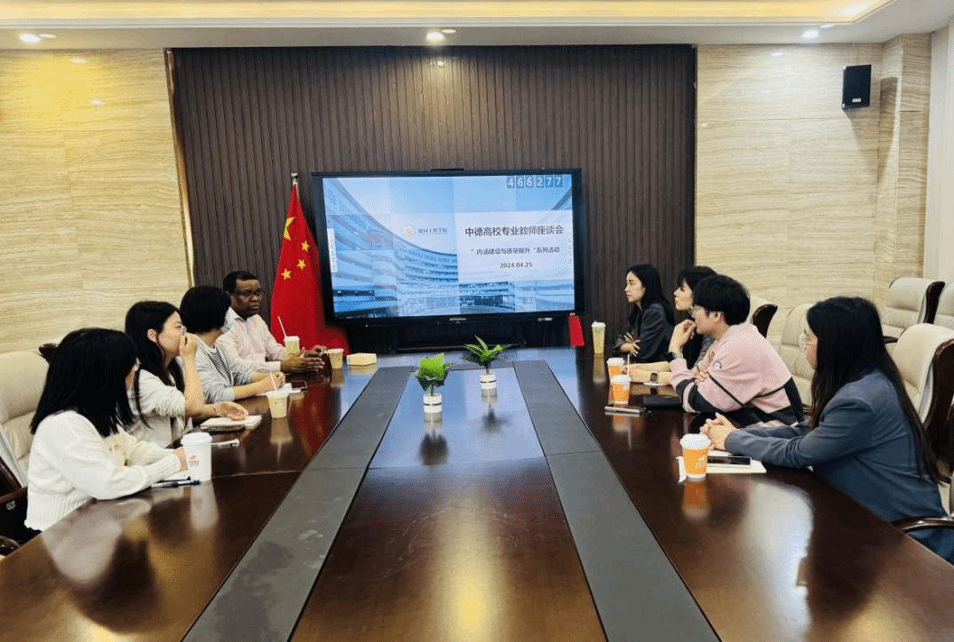 4月25日下午,德国工程学院“内涵建设与质量提升”系列活动之中德专业教师座谈会在德工会议室圆满召开。我院中外合作办学项目专业课外教Serge Ondoua以及中方专业课和德语课教师代表参与会议。本次座谈会旨在促进专业教师之间的交流与合作,共同提升教育教学质量,推动中外合作办学项目进程。在会上,教师们就中外合作办学项目的教学模式、课程设置、教学内容、教学设计、相关考试等方面进行了深入的交流与研讨。