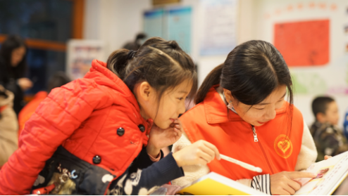 转过街角,穿过小道,看见那些郁郁葱葱的树,学府中央四点半课堂就到了。外面是鸟语花香,里面是欢声笑语,志愿者们与小朋友围坐在一起完成家庭作业,但由于每个小朋友性格不同,志愿者们也愿意根据他们自身的情况定制不同的方案。比如说高智睿性格有些跳脱,为了使四点半课堂更有条不紊的进行,志愿者就带他完成他们之间的小游戏,折纸飞机、写名字。每个小朋友都拥有属于自己的小小老师。