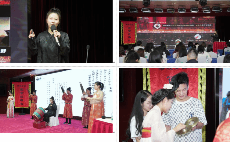 西安鼓乐丰富了中华音乐文化宝库,连接了民族音乐文化与古今声韵。非遗传承人、西京鼓乐社创始人、国家级非遗传承人何家营鼓乐社社长何忠信先生的关门弟子王雯雯老师开展了以“音从大唐来--西安鼓乐的前世今生”的主题讲座。西安鼓乐被誉为“活在地上的兵马俑”,王老师通过分享“乐种、乐器、乐派、乐社、乐谱、乐曲”六大方面为远景学子上了堂别开生面的鼓乐课。座谈会的最后,西京学院西安鼓乐社为大家演奏鼓乐,声韵悠长,让在座的远景人无不感受到震撼,更为接下来的西京学院和何家营古乐社的深入交流与探寻古韵留下无限遐想!