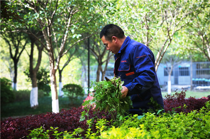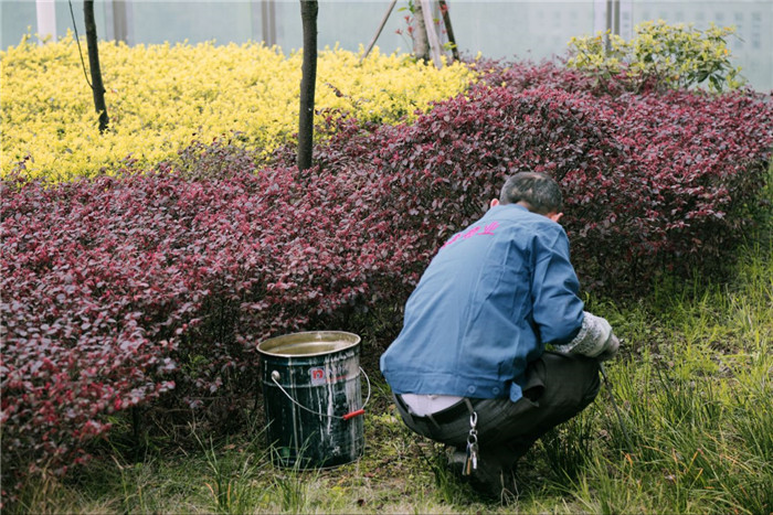 太阳已经爬上了树梢。园艺工人迎着明媚的阳光,在修剪校园内的树枝。只有定期的修剪,这些花草树木才会衬得这个校园的美丽。不管是艳阳高照的酷暑,还是风霜冰雪的寒冬,他都会尽其所能的去照顾这些花草,让它们能更好的装饰我们的校园。