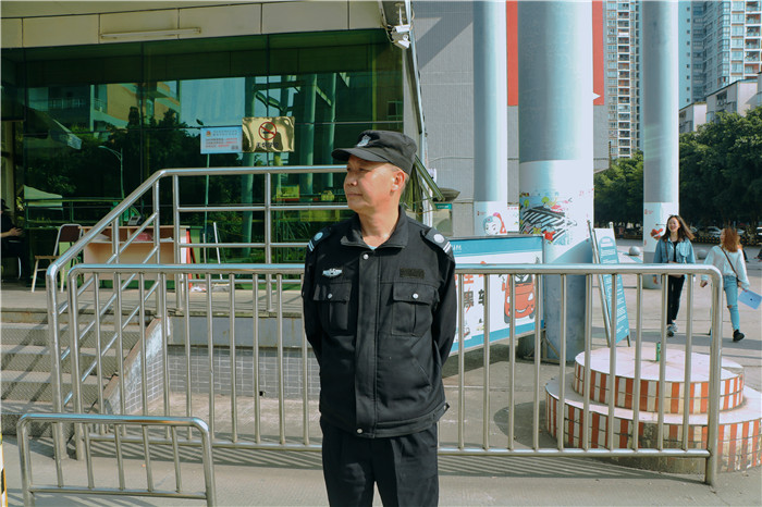 门卫保安早已整装待发,在校园各处巡逻。看着来来往往的同学,保安叔叔带着慈祥的目光看着这些似自己孩子般大小的学生,他用自己的微薄之力为这个校园带来安全感。默默无闻,却用行动证明着自己的价值。