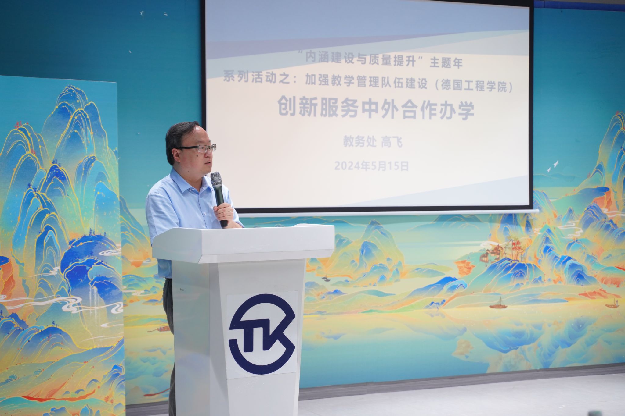 为深入贯彻《重庆移通学院“内涵建设与质量提升”主题年活动方案(移通教〔2024〕4号)》文件精神,2024年5月15日下午14:00,德国工程学院特邀请教务处处长高飞教授在天空书院长空报告厅作“创新服务中外合作办学”的主题报告,旨在加强德国工程学院教育教学工作内涵建设,助力教师发展与成长。
