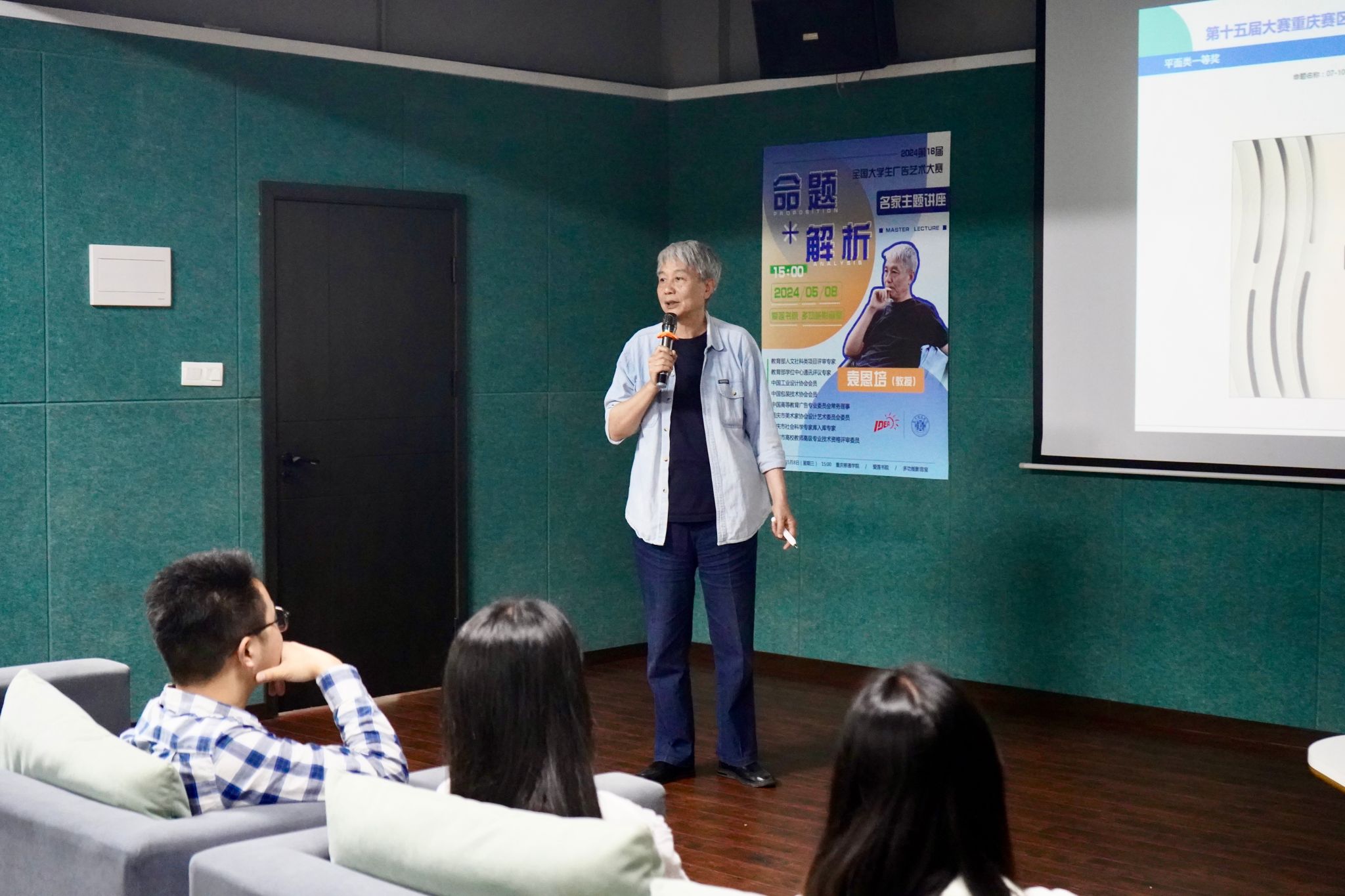 在分享过程中,袁教授从命题选择、评审方法、受众分析、工具使用、提交规范指南及相关负面清单等内容作深入讲解。其中,针对AI创作作品,袁教授表示参赛学生要拒绝没有灵魂的“一键生成”,应当正确地、充分地利用AI工具协助创作,进行多元化整合,将创意与技巧相结合,创作出具有活力和感染力的作品。